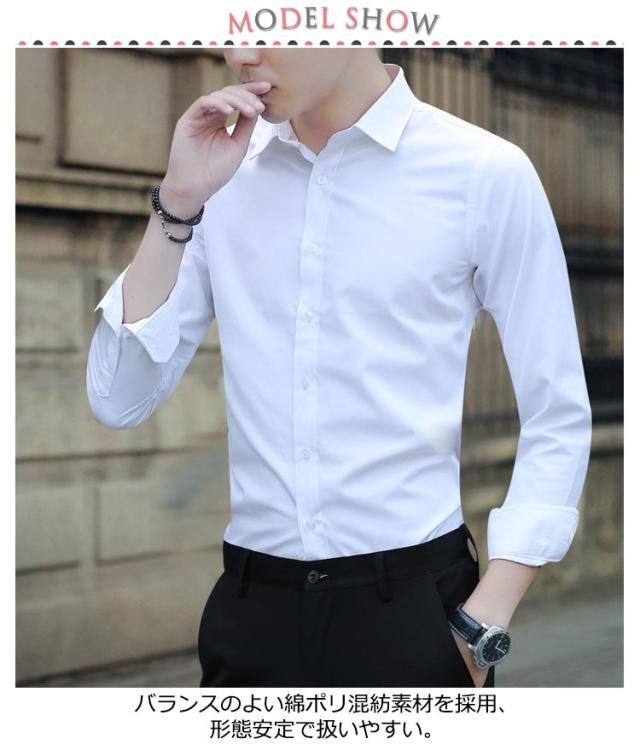 | 2枚セット 6colors×8size 抗しわ綿混素材 バランスのよい綿ポリ混紡素材を採用、形態安定で扱いやすい。 スリムシルエットに設計されていて、 ズボンやパンツと合わせやすくて、脚長効果もあります。 スタイリッシュさをアピールする工夫が満載ながら、スーツスタイルも ノータイスタイルをあくまでも上品に格上げしてくれます。 | |