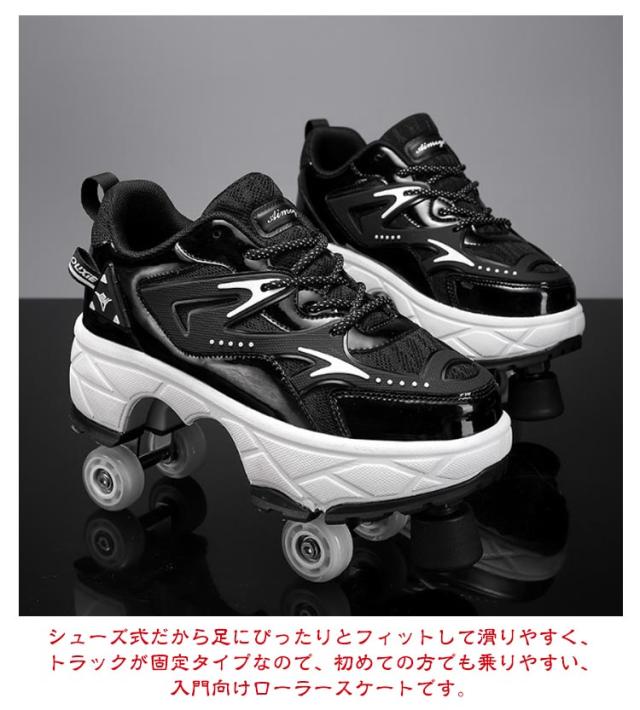 | ローラースケート&ウォーキングシューズの2way使用可能なメッシュスニーカー。【21.5-26.5cm】【男女兼用】 多目的スケートは、市場の従来のローラースケートとは異なります。非表示のウィールは通常のスニーカーのように隠すことができるため、ローラースケートはスケートだけでなく走ることもできます。 シューズ式だから足にぴったりとフィットして滑りやすく、トラックが固定タイプなので、初めての方でも乗りやすい、入門向けローラースケートです。 通気性の良いメッシュ地のアッパーで長時間の着用でも汗でべたつかず快適。 最も伝統的なレジャースポーツの1つでもあります。週末には、友達や子供と遊んだり、クリスマスプレゼントとして贈ったりできます。 | |