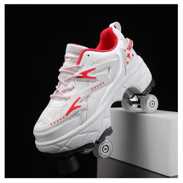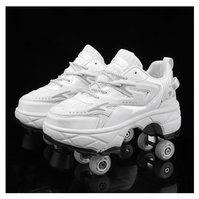配色 ローラーシューズ 4輪 大人 子供 ローラースケート メッシュ スニーカー ローラーシューズ 輪収納できる ワンボタン おしゃれ レディース メンズ キッズ 学生 子ども 運動靴 スポーツ 靴 シューズ ローラースニーカー 2WAY 初心者 通気性 白 黒 ブラック ホワイト