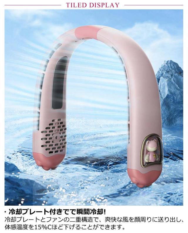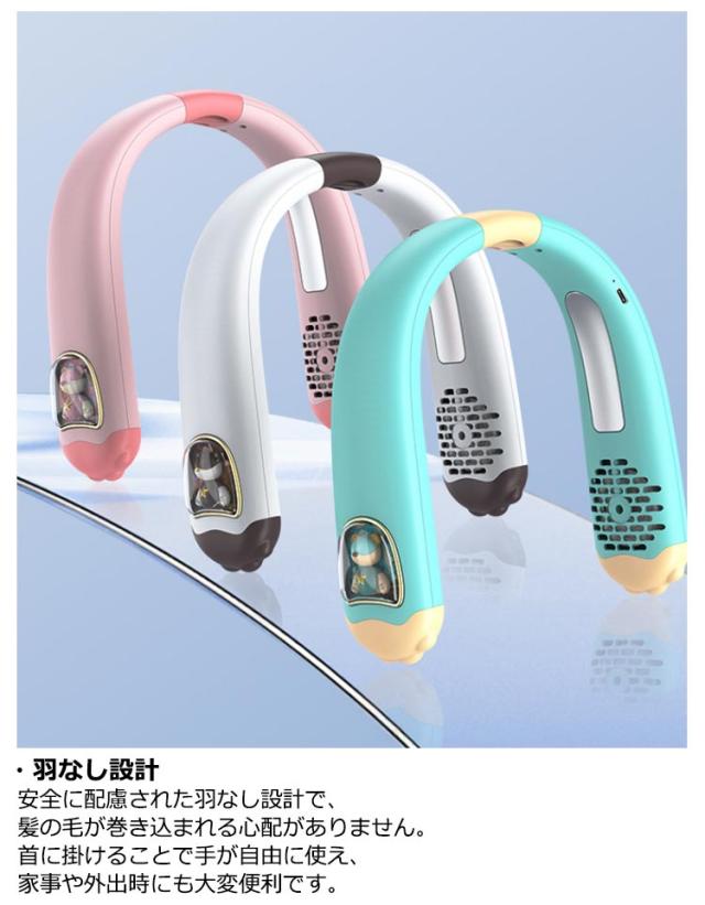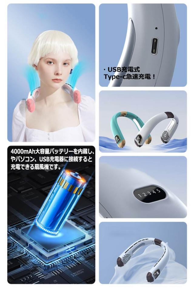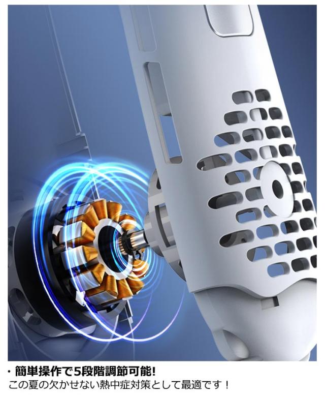 首掛け扇風機 ネッククーラー 冷却プレート 5段階風量調節 4000mAh大容量電池 LED風量表示 羽根なし 首かけ 扇風機 携帯扇風機 ミニ扇風機 可愛い ハンズフリー 小型 風量 静音 軽量 クール 冷感 ネックファン 充電式扇風機 USB扇風機