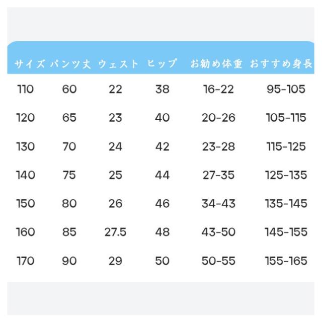 | サイズ | 110 120 130 140 150 160 170 |