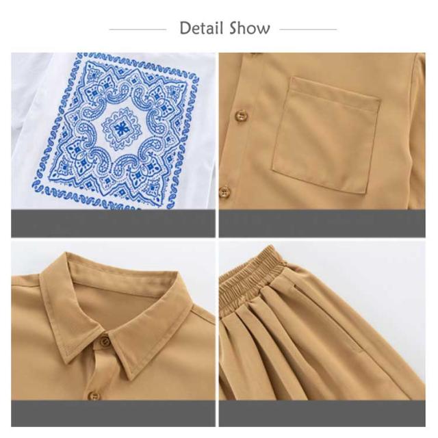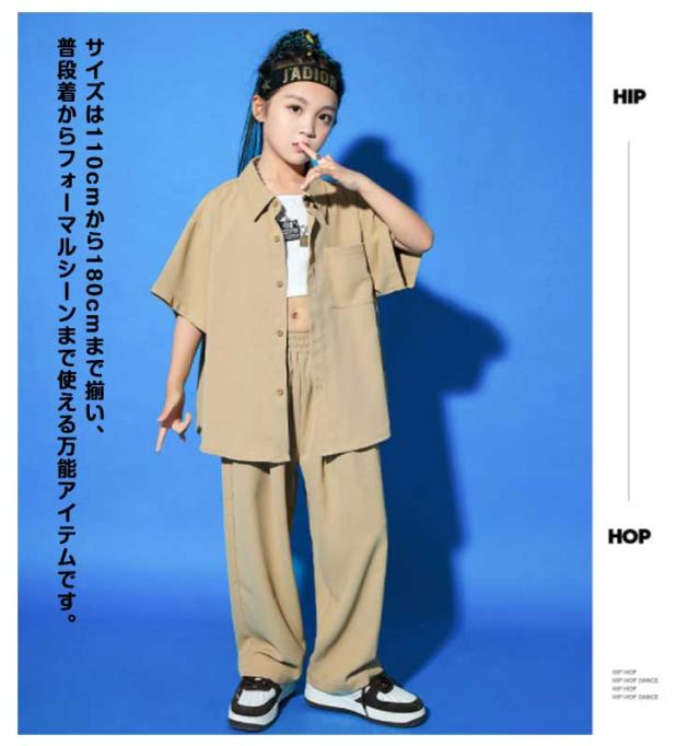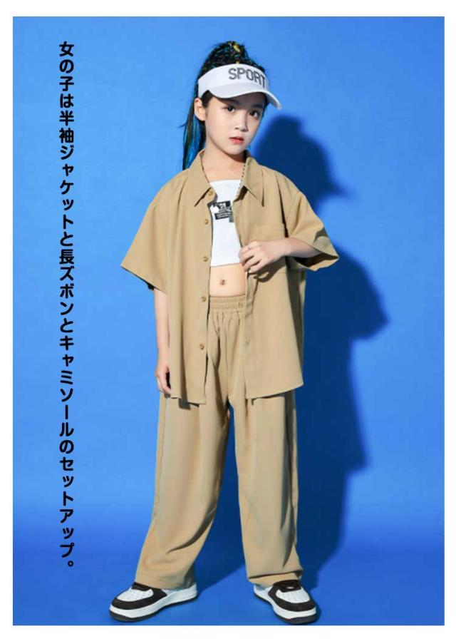 ダンス衣装 キッズ シャツジャケット カーゴパンツ ワイドパンツ ロング丈 セットアップ 夏用 カジュアルスーツ 3点セット 男の子 女の子 演出服 茶色 舞台服 練習着 ストリート系 ジャズダンス かっこいい 普段着 子供服 110−180cm 送料無料