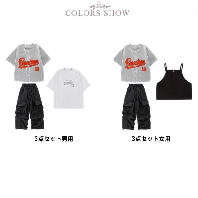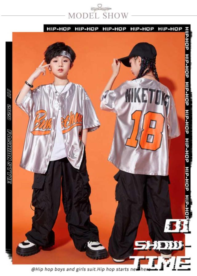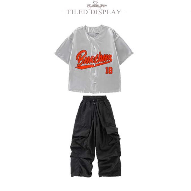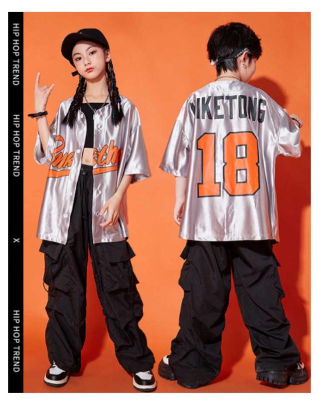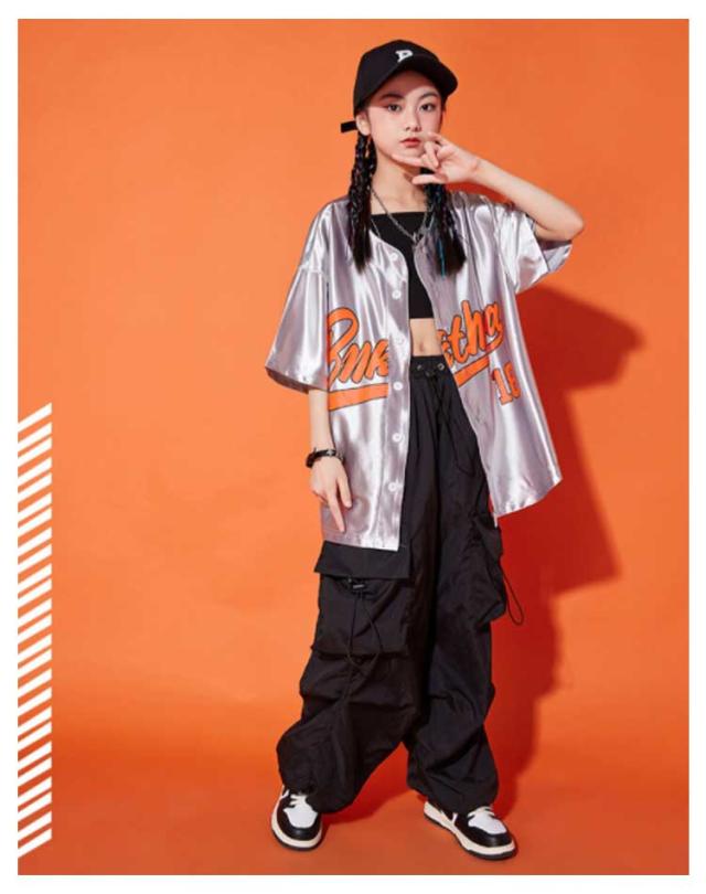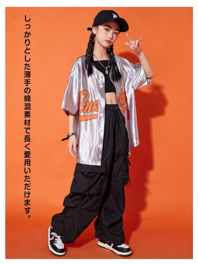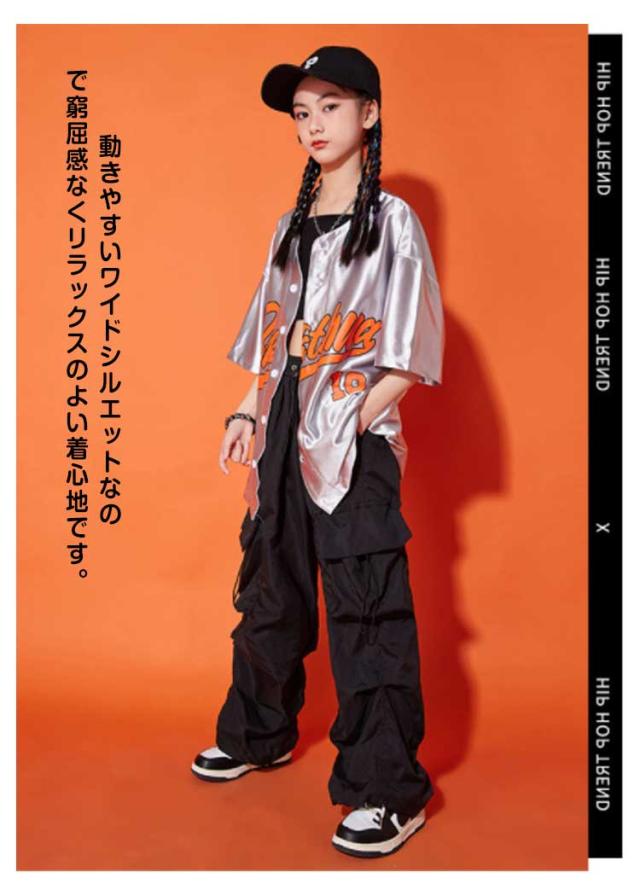 ダンス衣装 キッズ シャツジャケット カーゴパンツ ワイドパンツ ロング丈 セットアップ 夏用 カジュアルスーツ 3点セット 男の子 女の子 演出服 シルバー 舞台服 練習着 ストリート系 ジャズダンス かっこいい 普段着 子供服 110−180cm 送料無料