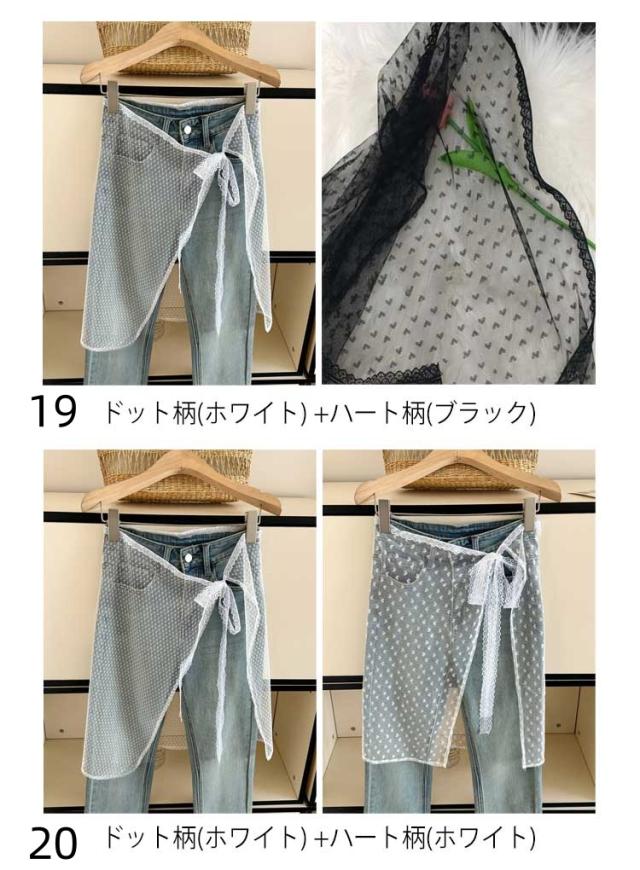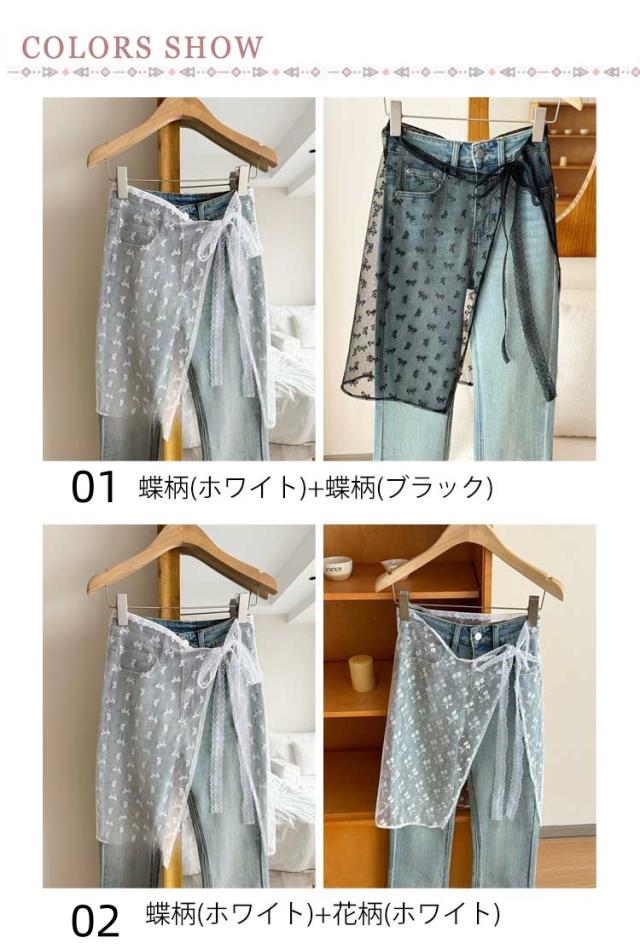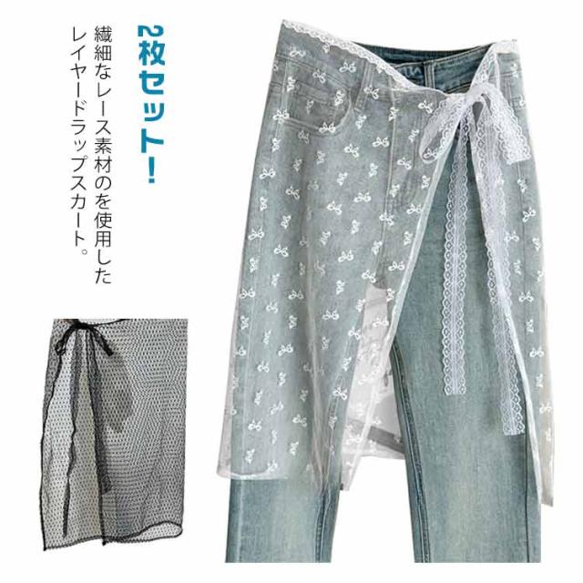 2枚セット ラップスカート シアー レース レイヤード スカート 総レース 刺繍 付け裾 レディース 巻きスカート シースルー 透け感 レイヤード 重ね着 ボトムス 花柄 ドット柄 ハート柄 蝶柄 ひざ丈 韓国風 SNS話題 送料無料