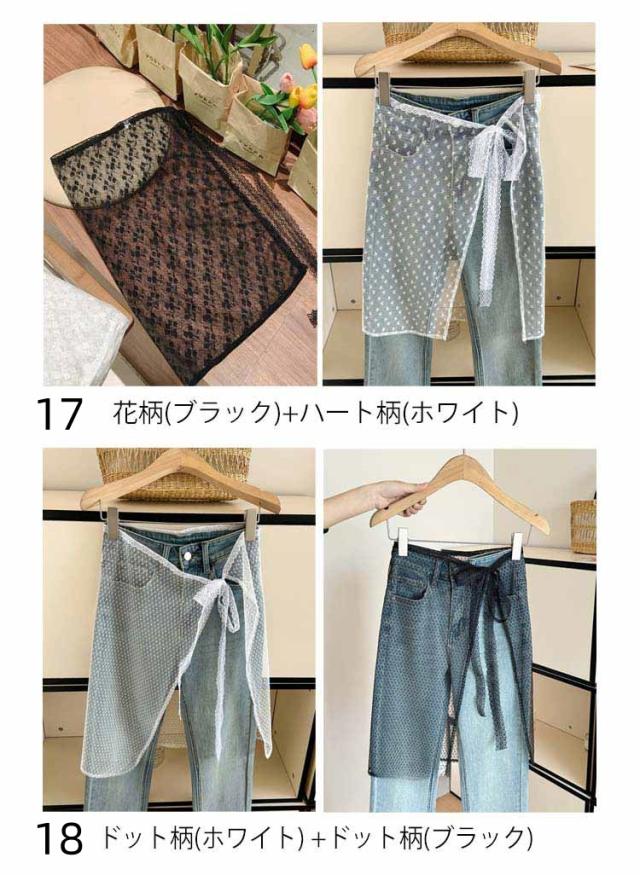 | 2枚セット!繊細なレース素材のを使用したレイヤードラップスカート。 ボトムスにプラスワンするだけでトレンド感抜群な格上げコーデが叶う。 抜け感がうまれるレース生地のアイテムなのでレイヤードスタイルにぴったり◎ シンプルなデザインにすることで様々なボトムとレイヤードしやすくしました。 リボンの結び位置をサイドにしたり、フロントに持ってきたりとお好みの位置で着用いただけるようになっています。 花柄・ドット柄・ハート柄・蝶柄の4種類をご用意しています。 | |