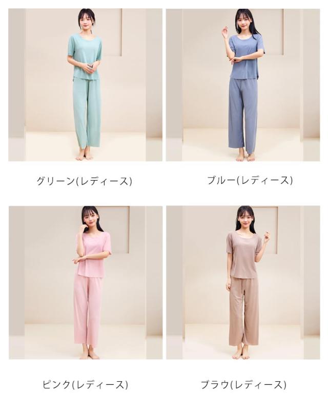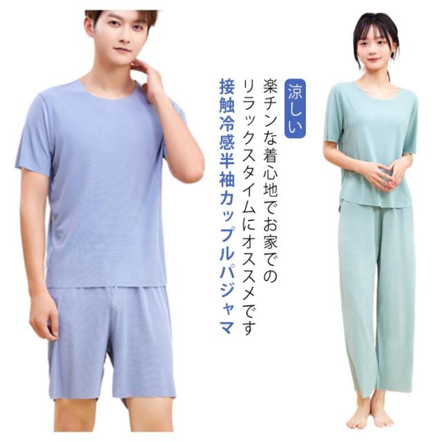 さらてろ 涼感 ルームウェア 上下セット レディース 半袖 パジャマ カップル ペア 部屋着 メンズ 女性 春 夏 春夏 冷感 薄手 涼しい ひんやり 快適 セットアップ かわいい 寝間着 寝巻き ナイトウェア 楽ちん 通気性 夫婦 おそろい