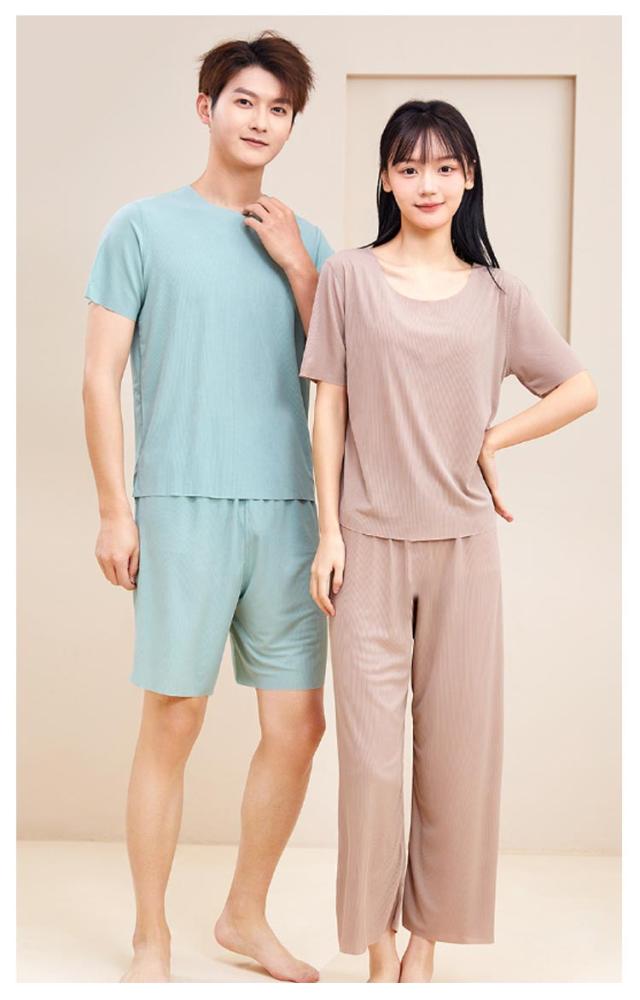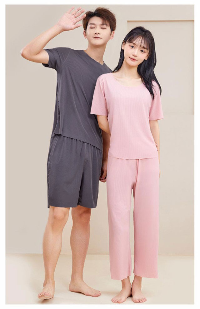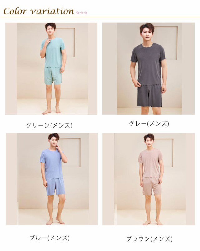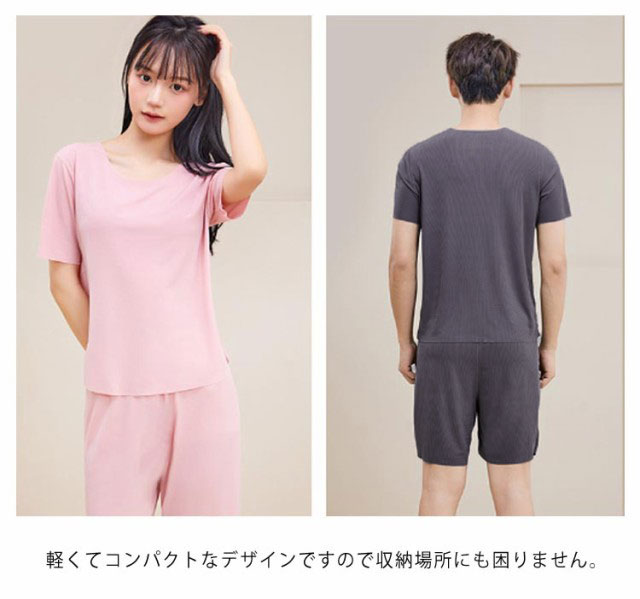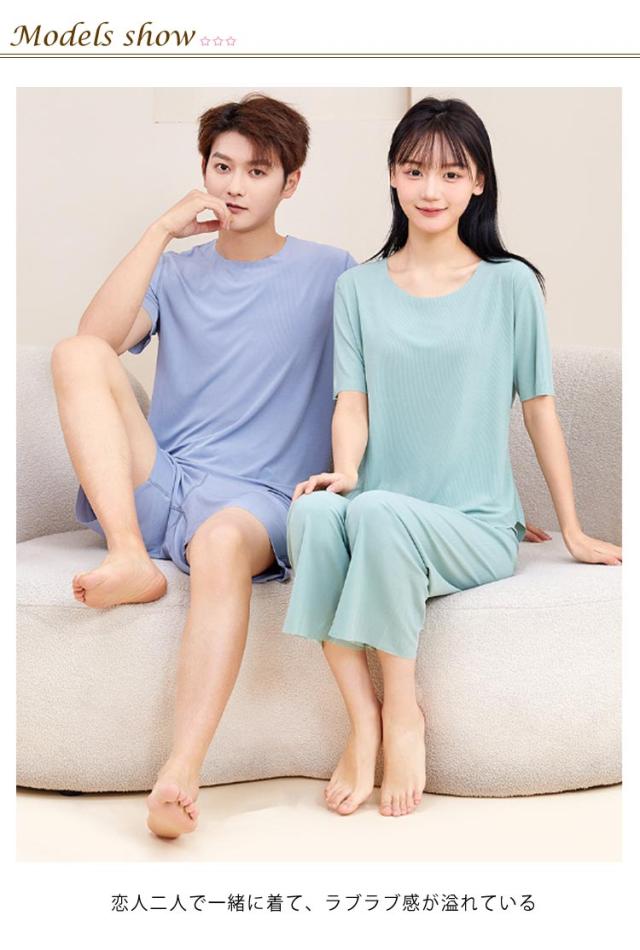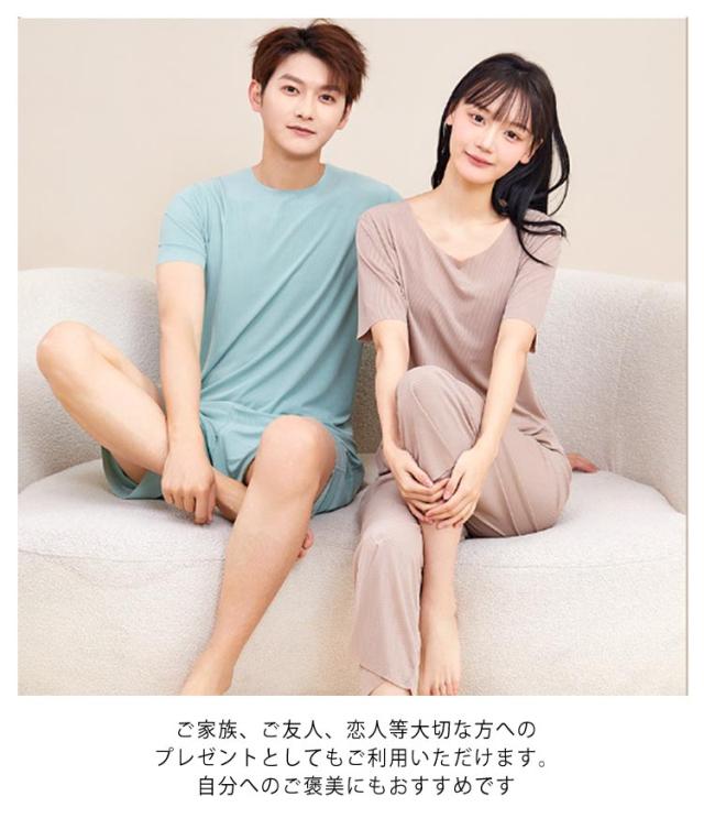 | 楽チンな着心地でお家でのリラックスタイムにオススメです♪ 接触冷感半袖カップルパジャマ 恋人二人で一緒に着て、ラブラブ感が溢れている♪ ウエストゴムですのでゆるっとリラックスできます。 軽くてコンパクトなデザインですので収納場所にも困りません。 ご家族、ご友人、恋人等大切な方へのプレゼントとしてもご利用いただけます。自分へのご褒美にもおすすめです | |