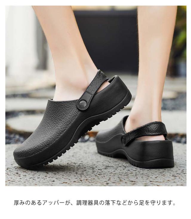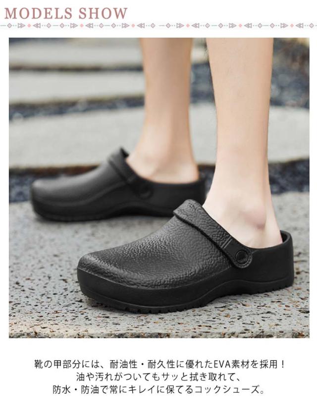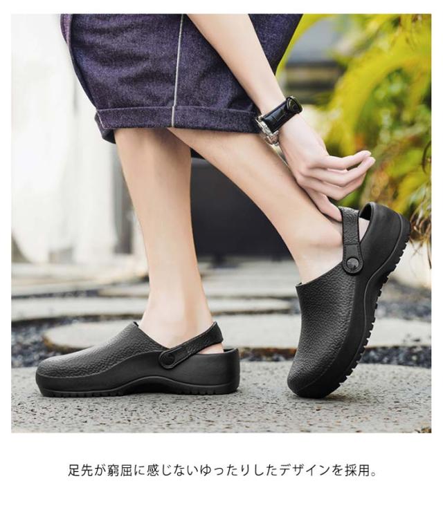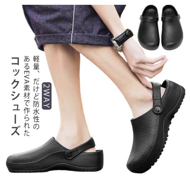 コックシューズ 厨房 作業靴 防水 厨房靴 サボサンダル クロッグサンダル 2WAY メンズ レディース EVA 軽量 厨房シューズ 飲食店 食品関係作業用 調理靴 キッチンシューズ 軽量 耐油 防水 耐滑 抗菌 防臭 男女兼用 24-27.5cm対応 ブラック 送料無料