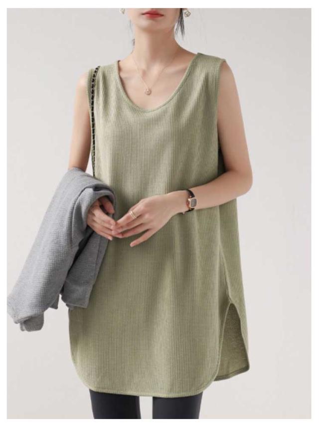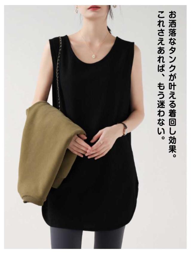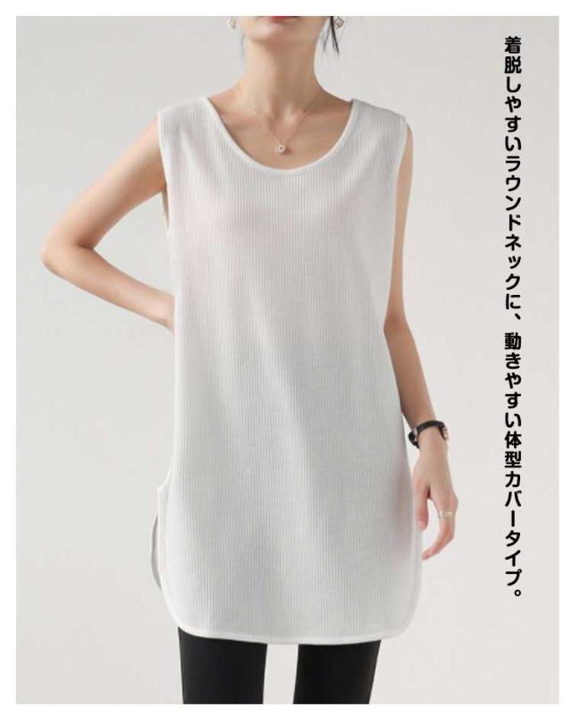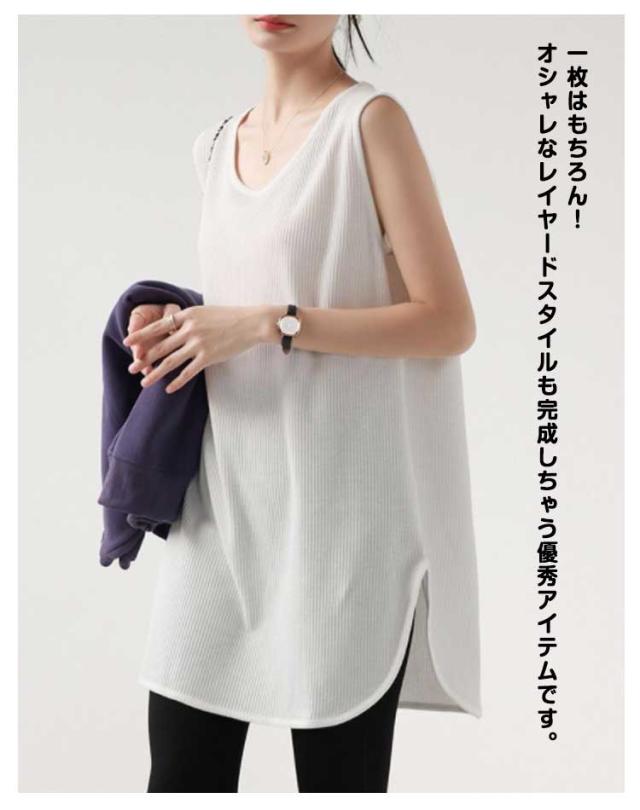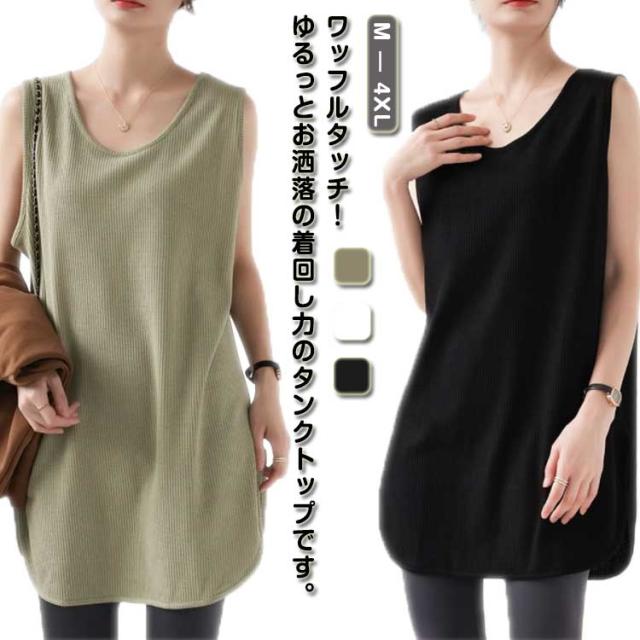 ワッフル タンクトップ レディース ロング ノースリーブ トップス インナー レイヤードTシャツ レイヤードタンクトップ 透けにくい シンプル カジュアル 春 夏 かわいい お尻が隠れる 大きいサイズ ゆったり M L XL 2XL 3XL 4XL