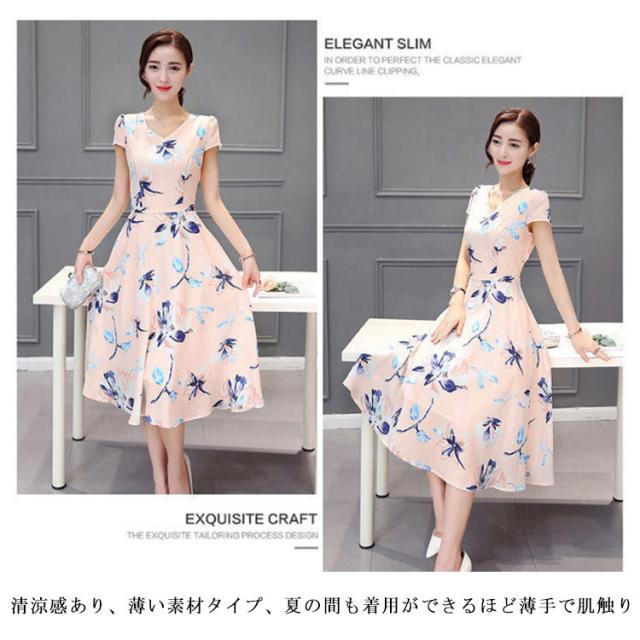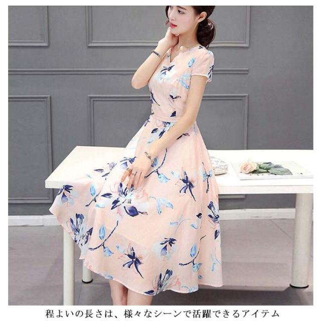 花柄ワンピース ワンピース 夏 レディース ロング ワンピース 夏 半袖 花柄 体型カバー 花柄 シフォンワンピース シフォン 着痩せ 薄手 きれいめ 大きいサイズ ウエストゴム リゾート フェミニン 上品 女らしい 軽い 涼しい きれいめ 送料無料