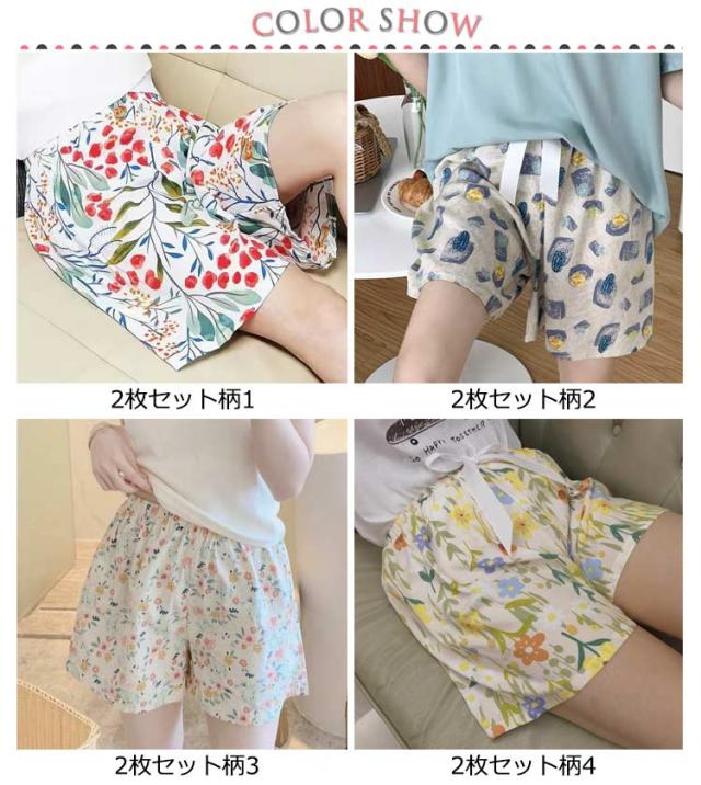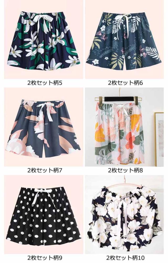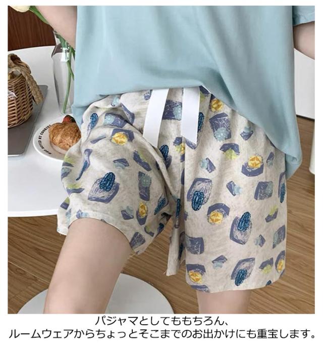 2枚セット ハーフパンツ レディース 短パン 部屋着 ルームウェア ルームパンツ ボトムス パンツ 春夏 イージーパンツ 総柄 接触冷感 5分丈 さらさら ハーフパンツ 部屋着 可愛い 短パン パジャマ 夏用 リラックスパンツ ルームパンツ