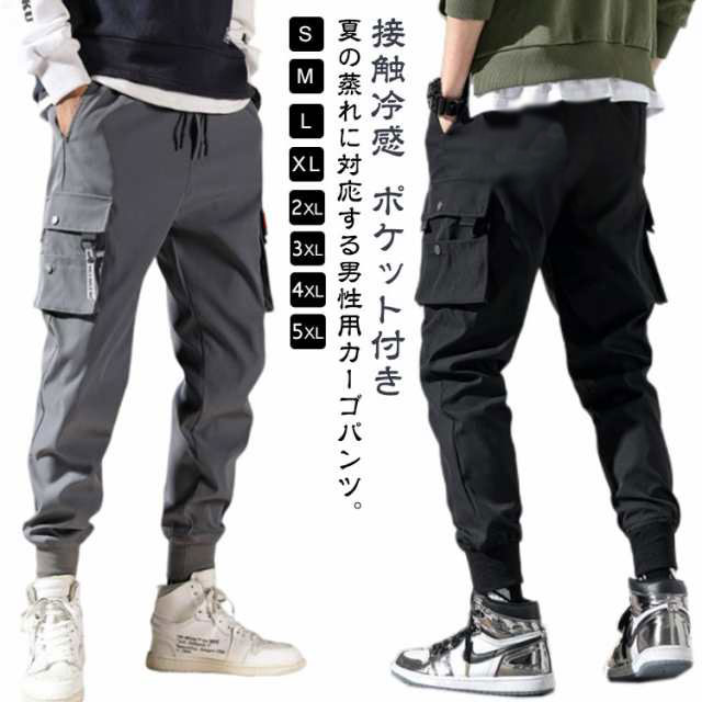 カーゴパンツ メンズ 夏 薄手 接触冷感 ひんやり 涼しい 冷感パンツ ロングパンツ ポケット付き ジョガーパンツ イージーパンツ カジュアルパンツ スリム 作業着 美脚 ウエストゴム カジュアル 無地 おしゃれ 大きいサイズ 送料無料 S-5XL