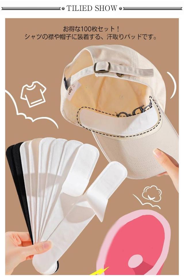 【100枚セット】 汗取り パッド 帽子 キャップ 汗取りパット 汗とりパッド 汗止め 汗パット 汗取りシート 使い捨て 襟 汗ジミ よごれ 防止 シート メンズ レディース キャップライナー 汗取りテープ ヘルメット 薄型 汗じみ防止 スポーツ 工事現場 暑さ対策 送料無料