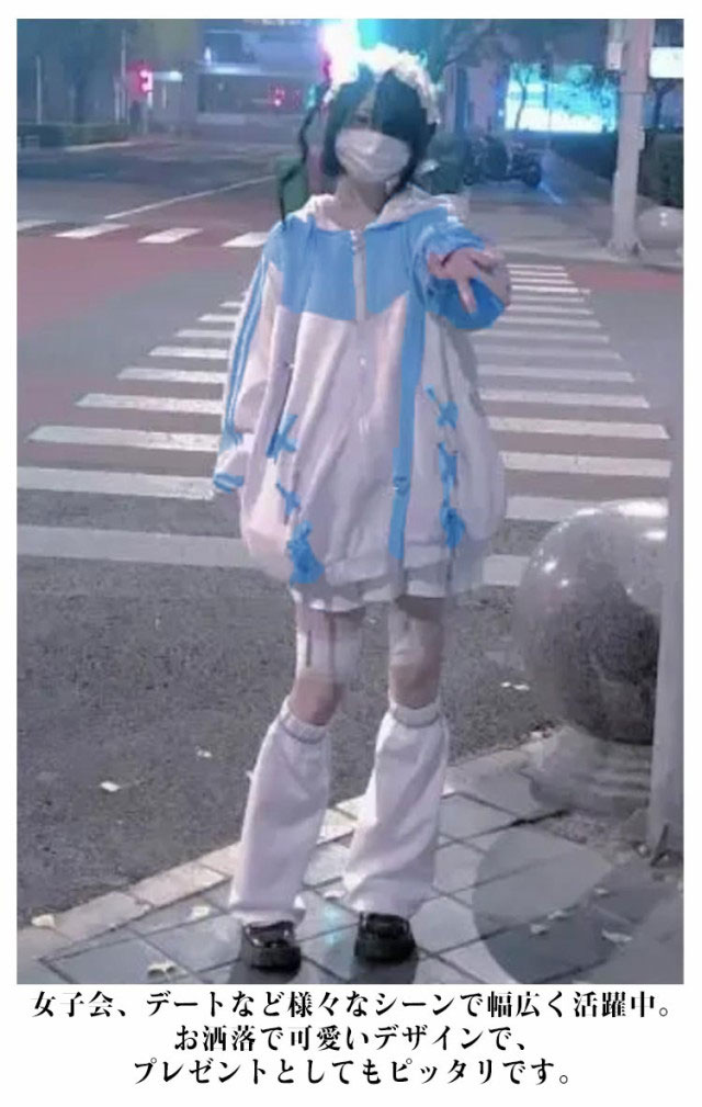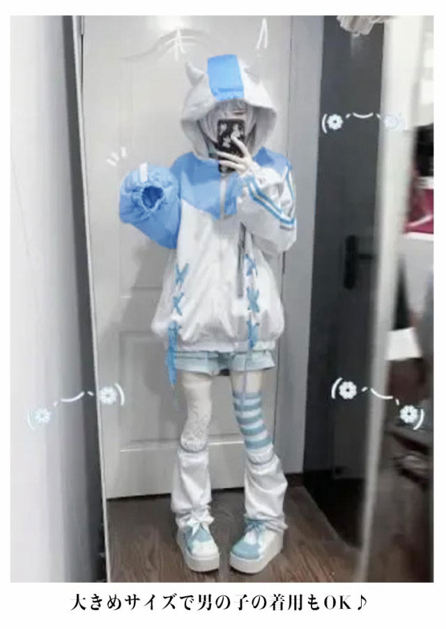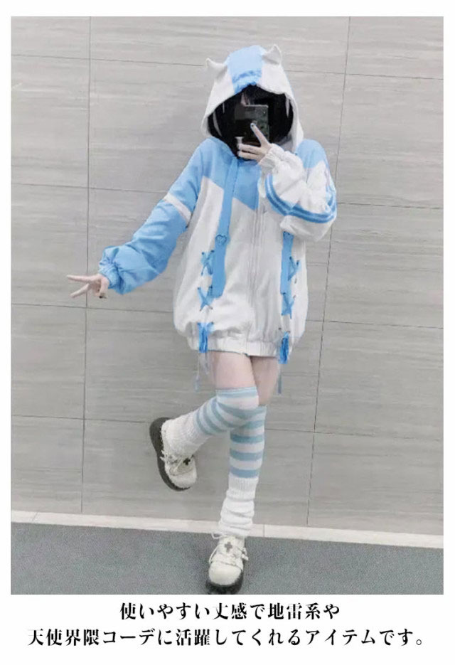 水色パーカー レディース ジャージ パーカー 水色 地雷系 メンズ ブルゾン サブカル 量産型 天使 水色界隈 天使界隈 長袖 原宿 原宿系 ユニックセス かわいい トップス 病み ジャージジャケット 切り替え 個性的 大きいサイズ ブルー サブカル 仮装