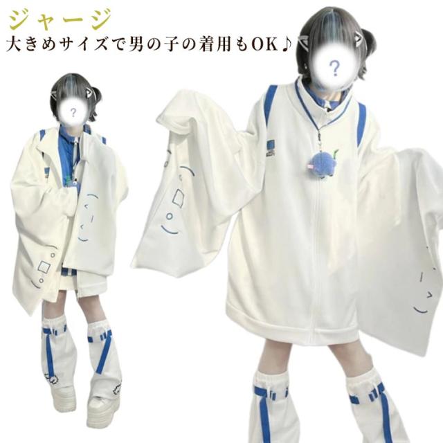 サブカル系 ジャージ パーカー 水色 地雷系 病み ユニセックス ビッグシルエット レディース メンズ ブルゾン サブカル 量産型 天使 水色界隈 長袖 原宿 原宿系 かわいい トップス ジャケット 個性的 ブルー サブカル 仮装 天使界隈
