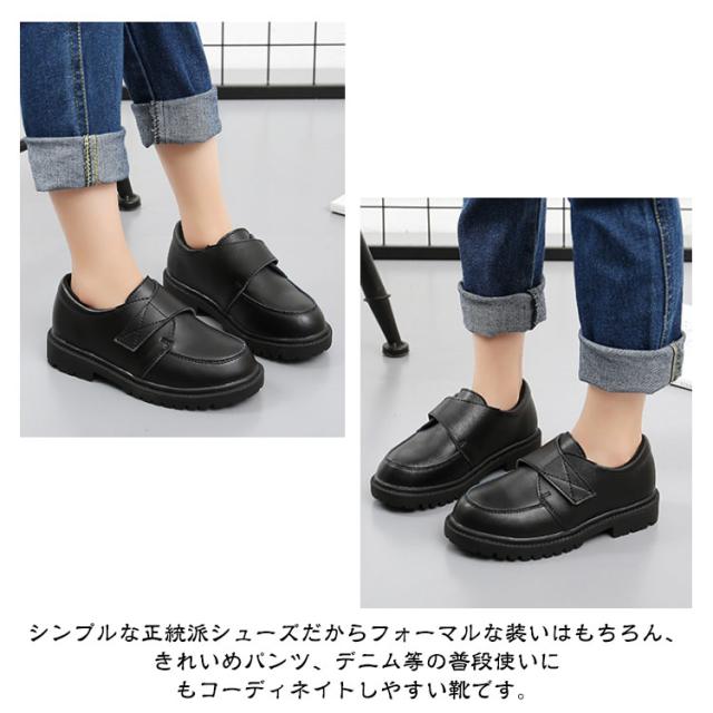 | 【16〜24cm】【フォーマル靴】【2種類】 艶消しタイプのマッドな合皮製シューズ。 ひもタイプとマジックテープタイプがあり、履きやすく、足が疲れにくく、シンプルで上品なデザインの子供靴です。 つま先が丸くなっているので、お子様の足に負担のかかりにくいデザイン。 シンプルな正統派シューズだからフォーマルな装いはもちろん、きれいめパンツ、デニム等の普段使いにもコーディネイトしやすい靴です。 七五三・入園・卒園・入学・卒業・結婚式・発表会などの幅広いフォーマルシーンでのドレスシューズに通園用・通学用と普段使いのシューズとしてもお使い頂けます。 靴底は滑りにくいゴムソール採用。 軽量で適度なゆとりが履き心地がよく長時間履いても疲れにくい。 本革よりもお手入れが楽ちんで柔らかめの合成皮革なので、やんちゃ盛りのお子さまも履きやすくなっております。 | |