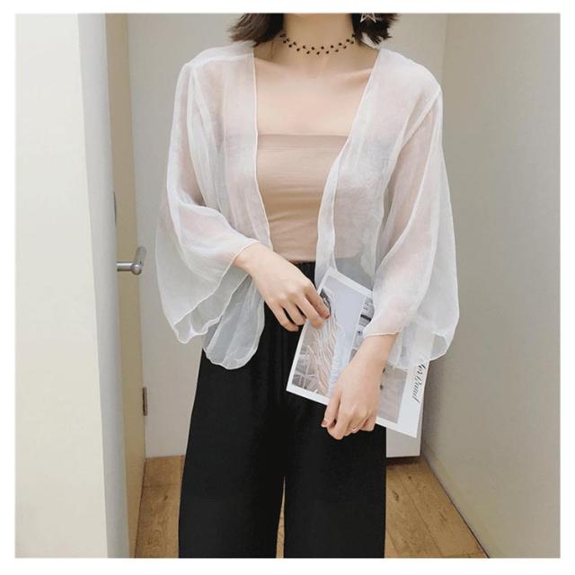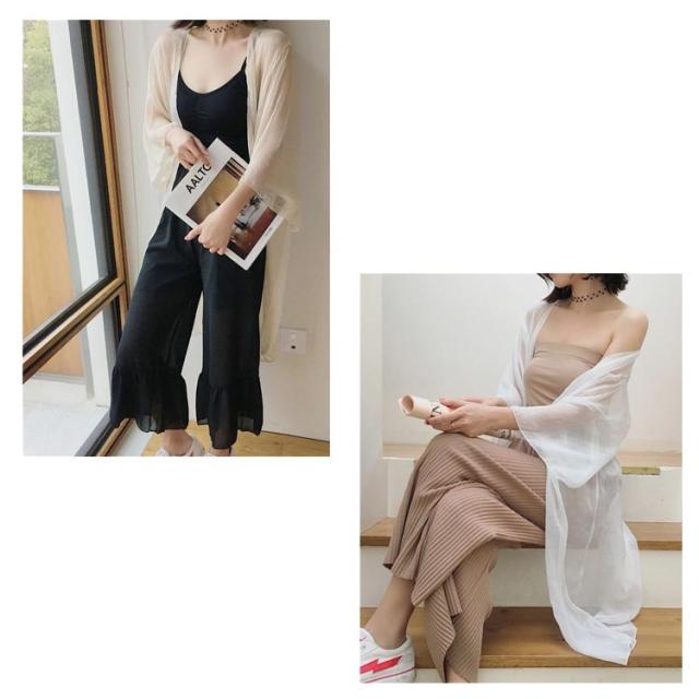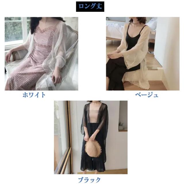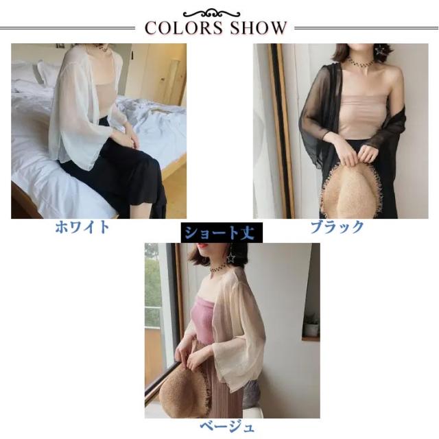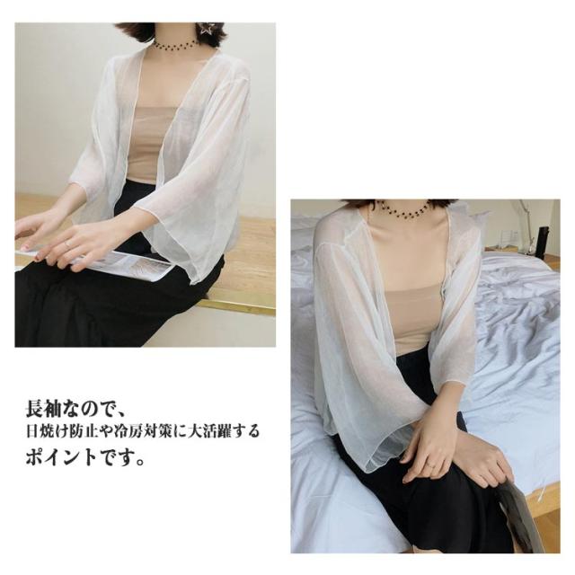 2丈選べる!サマーカーディガン ボレロ 長袖 カーディガン 透け感 シフォン ショート丈 ロング丈 UVカット お洒落 シアーシャツ レディース 冷え防止 紫外線対策 羽織り 薄手 シンプル 無地 エアコン対策 きれいめ 体型カバー 送料無料