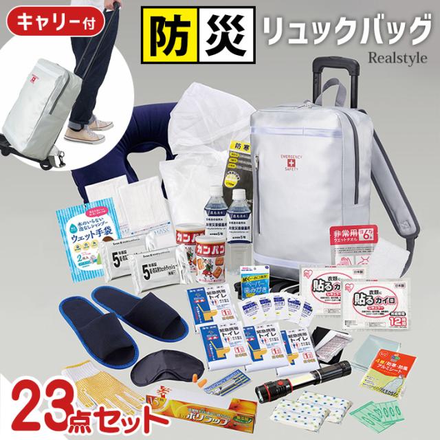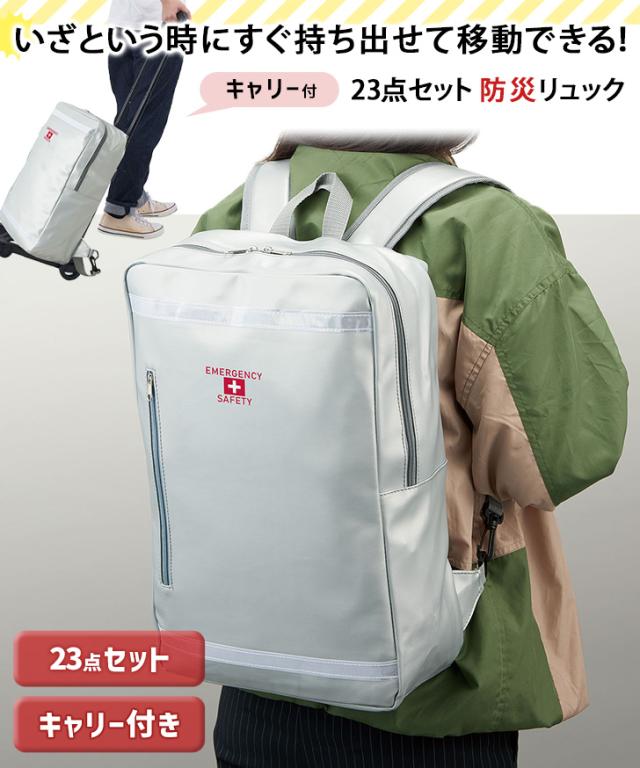 新作 避難セット リュックバッグ キャリー付き 防災リュック 防災グッズ 災害グッズ 大容量 丈夫 非常用持ち出し袋 便利 安心 非常時 23点セット