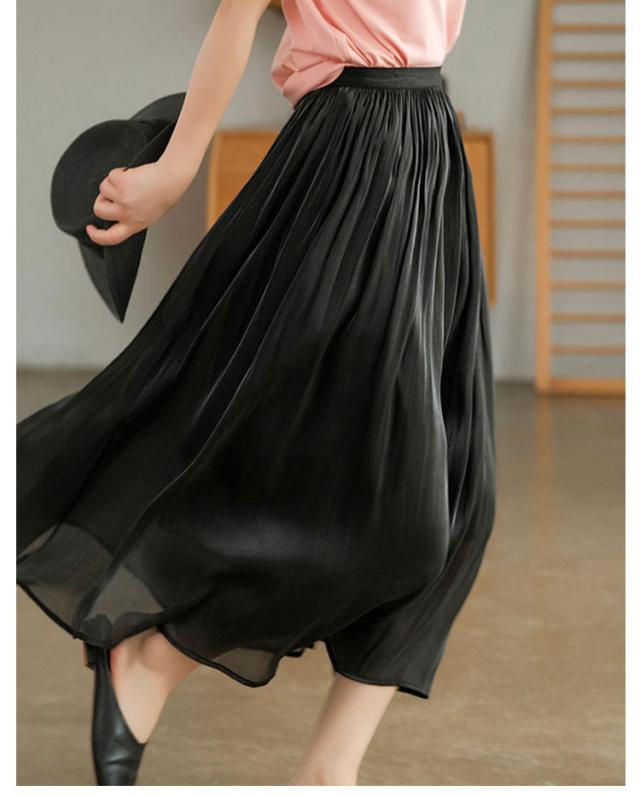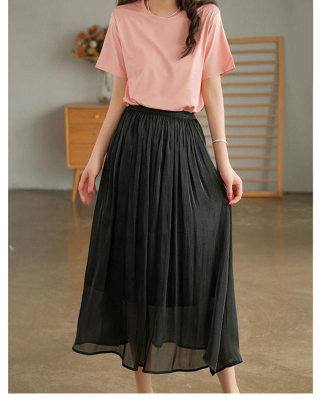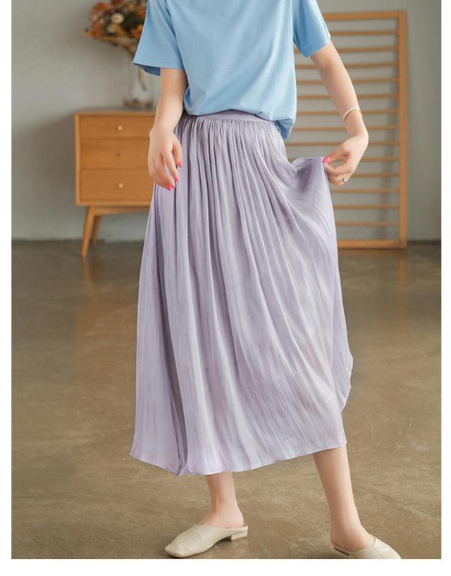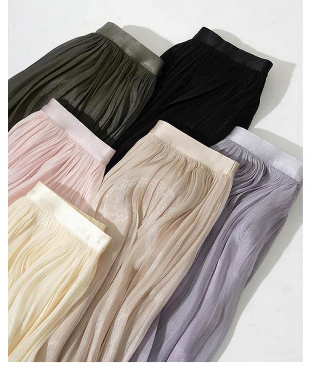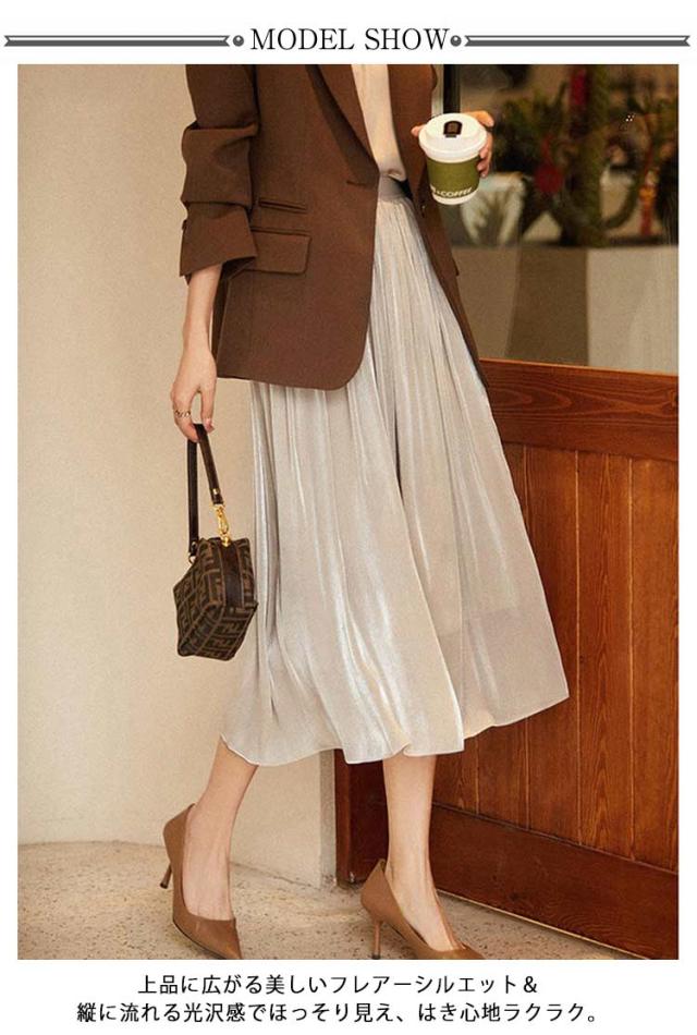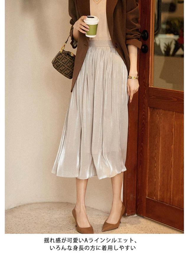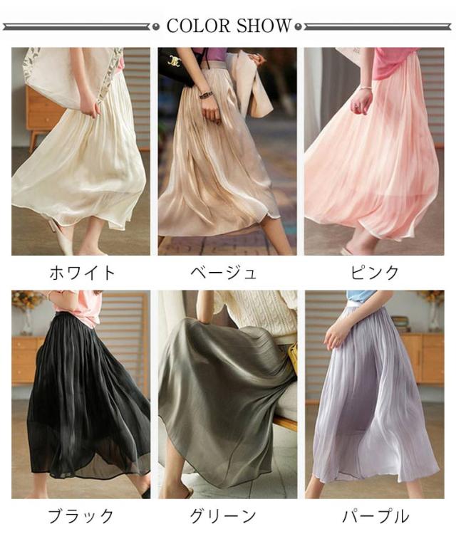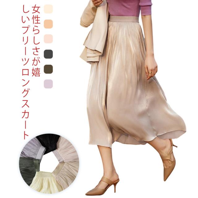 プリーツスカート レディース ロングスカート ハイウエスト aラインスカート 春夏 スカート ボトムス ウエストゴム 無地 大人 脚長効果 細見え 着痩せ 大きいサイズ 体型カバー カジュアル キレイめ