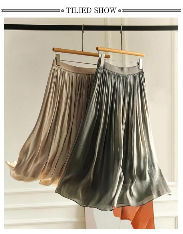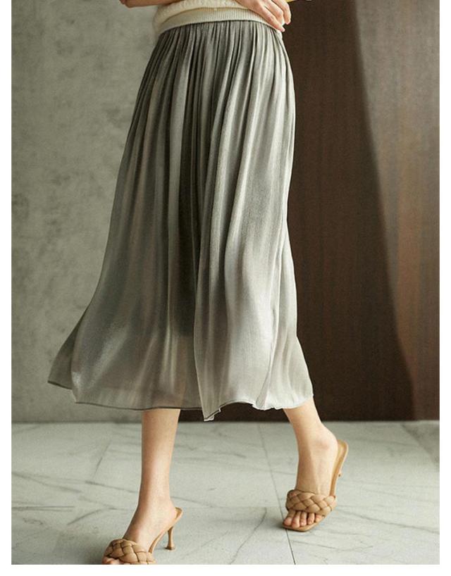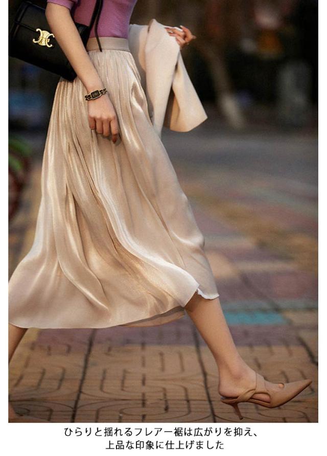 | 女性らしさが嬉しいプリーツロングスカート。 揺れ感が可愛いAラインシルエット、いろんな身長の方に着用しやすい。 ひらりと揺れるフレアー裾は広がりを抑え、上品な印象に仕上げました。 上品に広がる美しいフレアーシルエット&縦に流れる光沢感でほっそり見え、はき心地ラクラク。 | |
