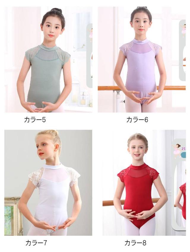 レース レオタード キッズ スカートなし バレエレオタード 子供 レース 切り替え ジュニア 女の子 体操 競技 ダンス 衣装 バレエ用品 発表会 練習着 100 110 120 130 140 150 160 170cm