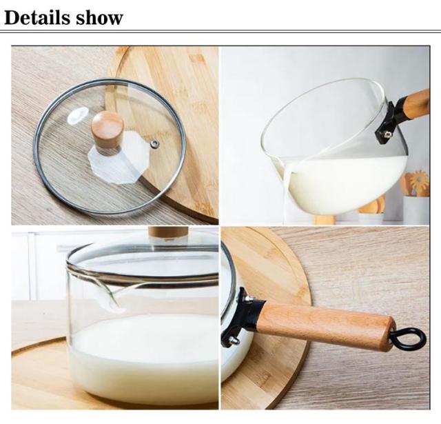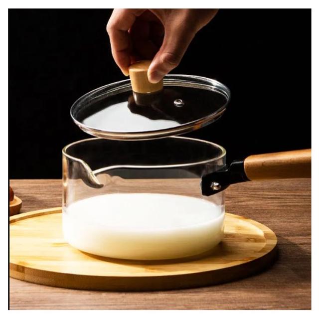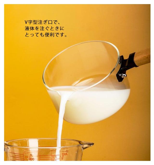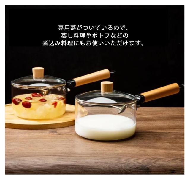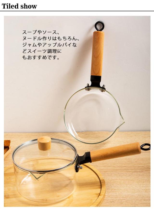 ガラス 片手鍋 深型 蓋付き 注ぎ口付き ガラス鍋 耐熱 ガラスパン 耐熱ガラス 鍋 なべ ガス火対応 直火対応 ガラス製 ミルクパン ソースパン ガラスポット ソース鍋 ガラス蓋 木製ハンドル 大きめ ガラス調理鍋 耐熱ガラス鍋 クリア 透明 おしゃれ 北欧 調理器具