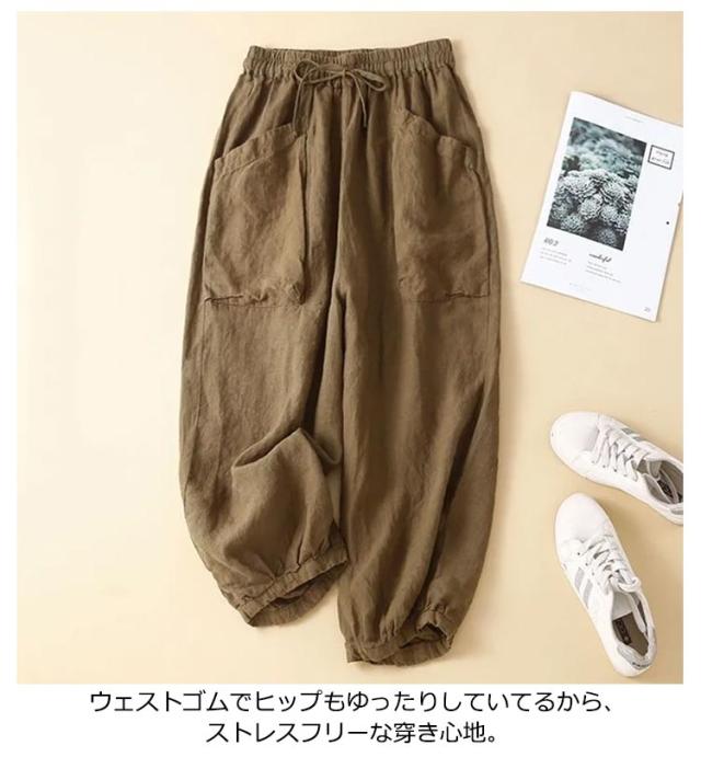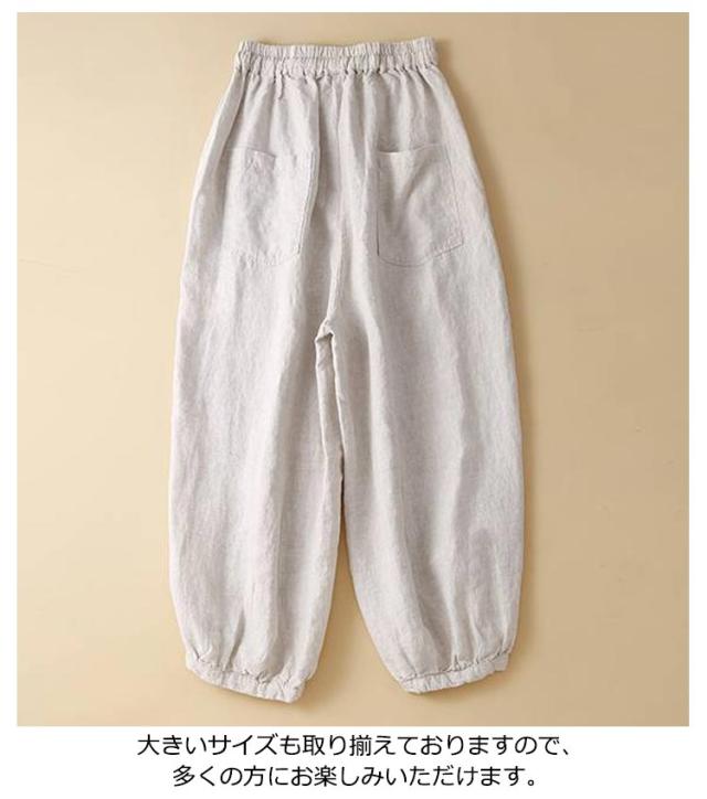 麻 リネン バルーンパンツ レディース 春 夏 リネンパンツ パンツ ロング丈 アンクルパンツ サルエルパンツ イージーパンツ ウェストゴム ボトムス 九分丈 薄手 ロングパンツ 通気抜群 カジュアルパンツ 大きいサイズ 体型カバー 部屋着 低身長