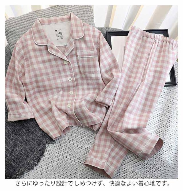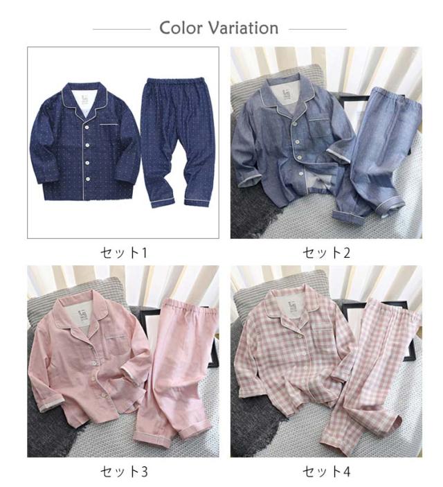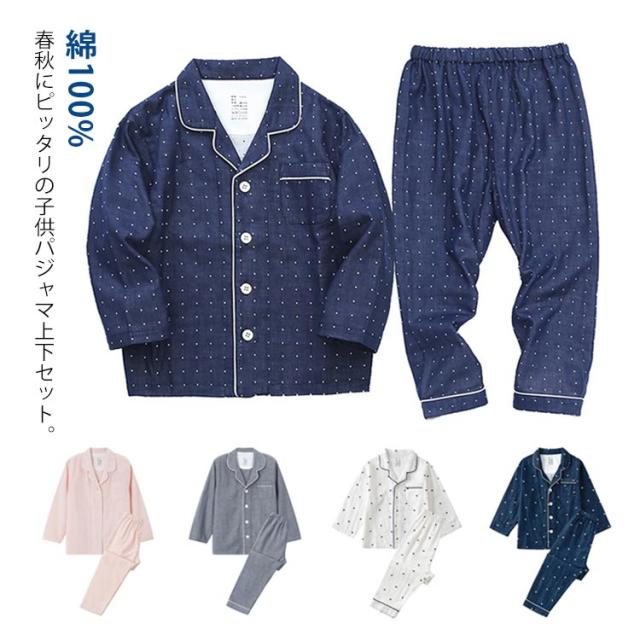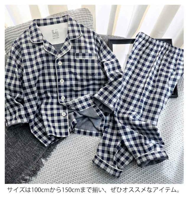 子供パジャマ 寝巻き 二重ガーゼ 綿100% ルームウェア キッズ パジャマ 女の子 男の子 長袖 ズボン セットアップ ダブルガーゼ 春 秋 可愛い チェック ドット柄 ナイトウェア ガーゼ 上下セット 部屋着 薄手 100-150cm