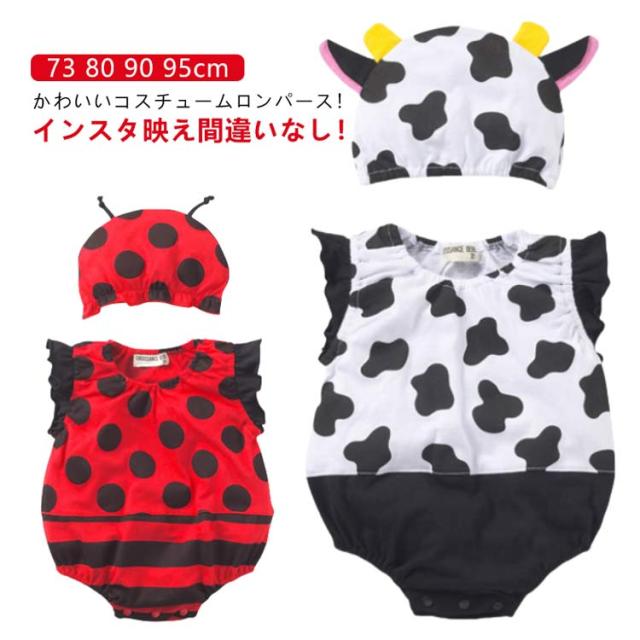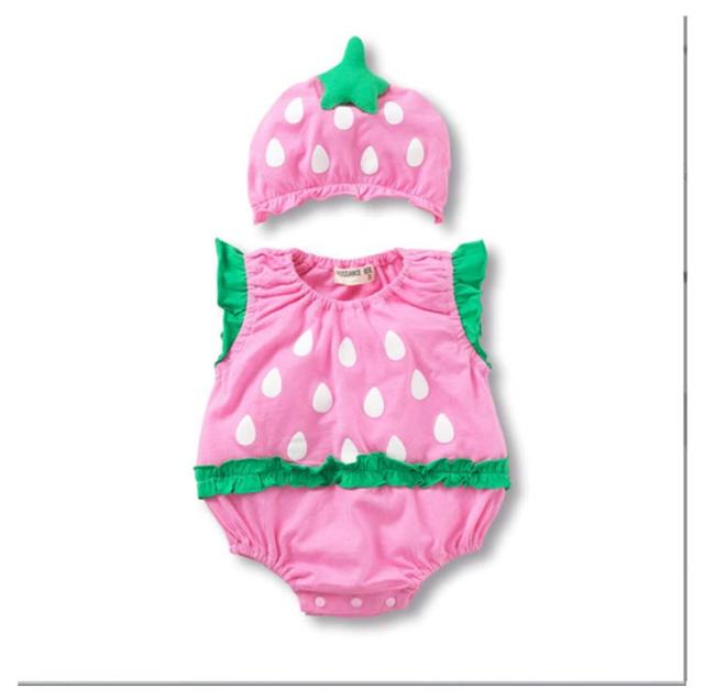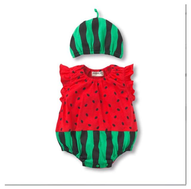 ベビー服 ロンパース 男の子 女の子 かわいい スイカ いちご ハチ ベビー 半袖 ノースリーブ カバーオール 73 80 90 95cm ボディースーツ 股下スナップボタン キャップ 帽子付き 春 夏 コスプレ 仮装 赤ちゃん 幼児用 子供 水着 インスタ映え 撮影 出産祝い 送料無料