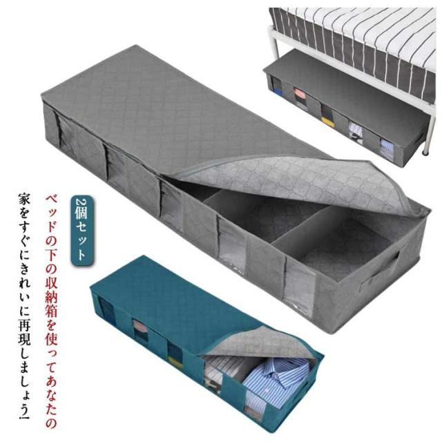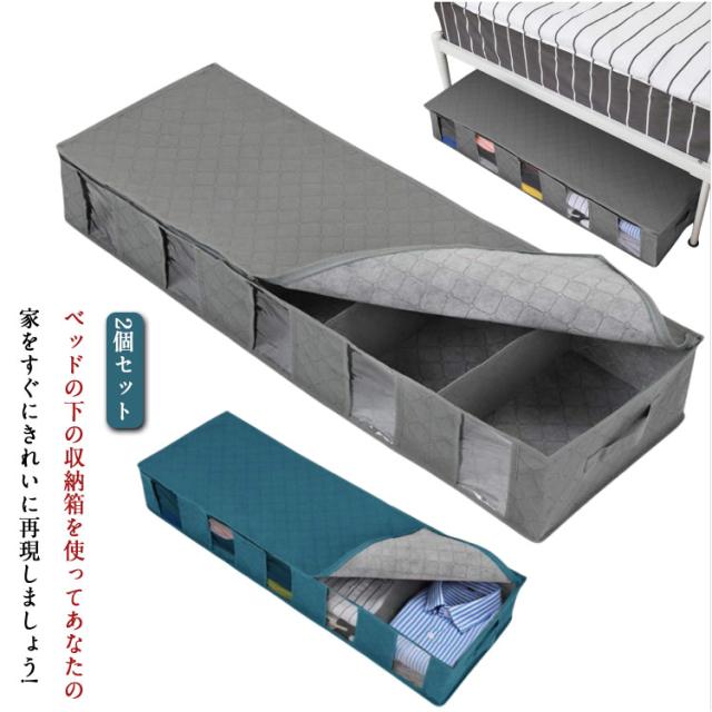 ベッド下収納ケース 仕切り付き 衣類収納 2個セット 薄型 不織布 ベッド下収納 収納袋 通気性良好 ほこり除け 持ち手 靴 収納 スリム 収納ボックス 押し入れ収納 すき間収納 防塵 分類収納 スペース活用 折り畳み 衣類保管