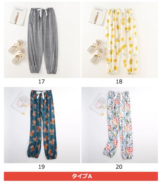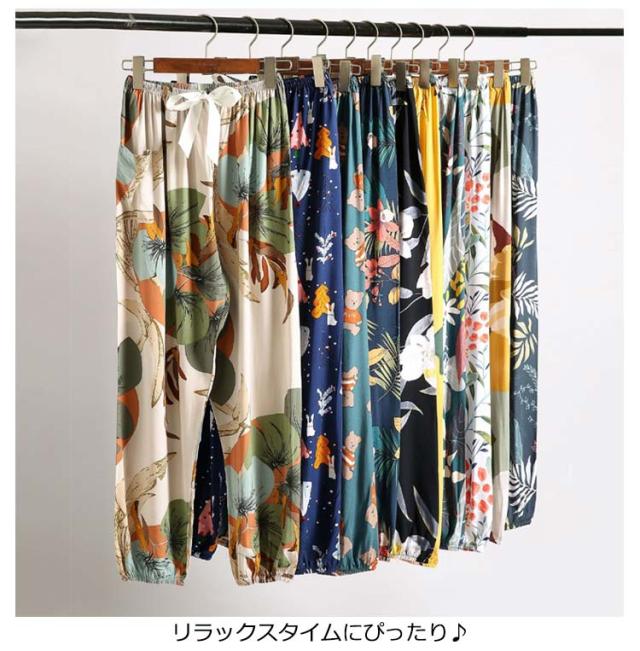 | ゆったりシルエットで、ひざが隠れる丈感のルームパンツです。 春秋はもちろん、夏用のパジャマとしても活躍してくれます。 リラックスタイムにぴったり♪ 通気性がよく涼しい。女性らしいカラフルなカラーと柄がオシャレ。 | |