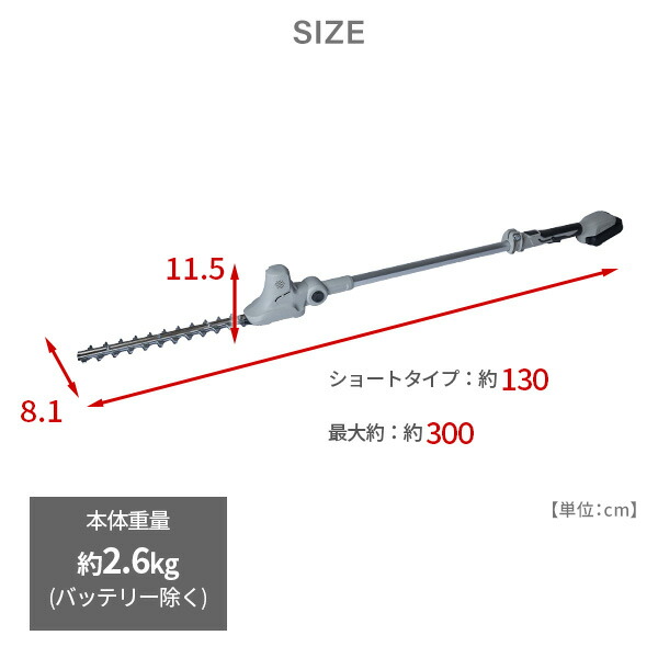 | 山善 YAMAZEN ヘッジトリマー 2WAYポールヘッジトリマー 充電式 単品 刈込幅約300mm 両刃タイプ 高枝 庭木 剪定 生垣 YPH-180 |