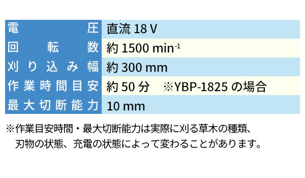 | 商品説明 | 【本体】 ●電圧:直流18V ●作業時間目安:約50分(※バッテリーYBP-1825の場合) ●刈込幅:約300mm ●最大切断能力:約10mm ●回転数:1,500min-1 ●内容:ポールヘッジトリマー本体+着脱式伸縮延長ポール、ブレードカバー、保護メガネ、肩掛けバンド、取扱説明書 ●手の届きにくい高い位置の生垣や極めて幅の広い生垣の作業に ●充電式なので電源のない場所にも便利 ●伸縮ポール最大約3mの長さで高い場所もラクラク剪定 ●ヘッドの角度は約180度可動調整が可能 ※バッテリー、専用充電器は別売になります。 |