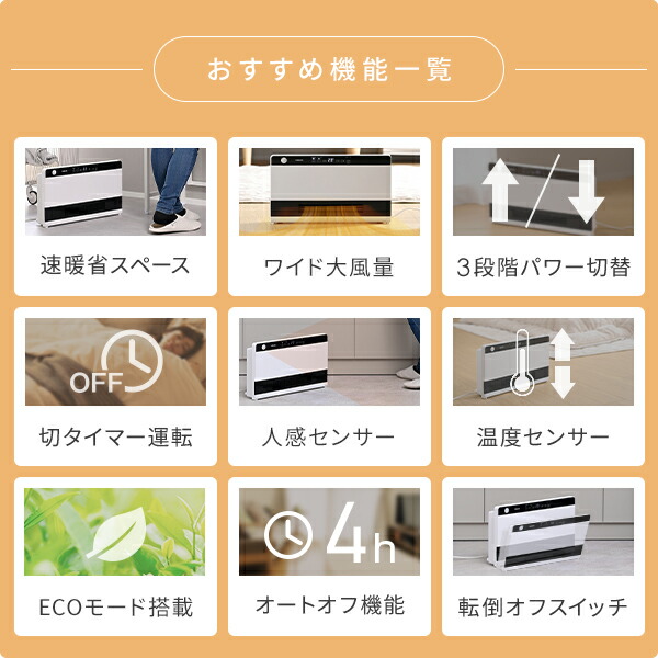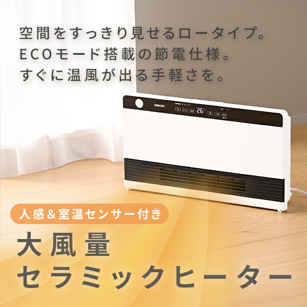 | 山善 YAMAZEN ヒーター ワイドパネルセラミックヒーター 温度センサー 人感センサー 大風量 ECOモード DSF-VW121(W) |