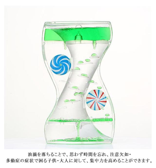 | カラフルな液体の泡がゆっくりと落ちるストレス軽減効果のあるオイルタイマーです。 カラフルな油滴で鑑賞をもっと楽しく、綺麗で様々な色の油滴が落ちるので、インテリアやおもちゃとしてのお子様へのプレゼントに最適です。 ついつい見入ってしまう、不思議でキレイな砂時計のような、オイルタイマーです。 泣いている子供に見せると泣き止むらしい? 油滴を落ちることで、思わず時間を忘れ、注意欠如・多動症の症状で困る子供・大人に対して、集中力を高めることができます。 | |