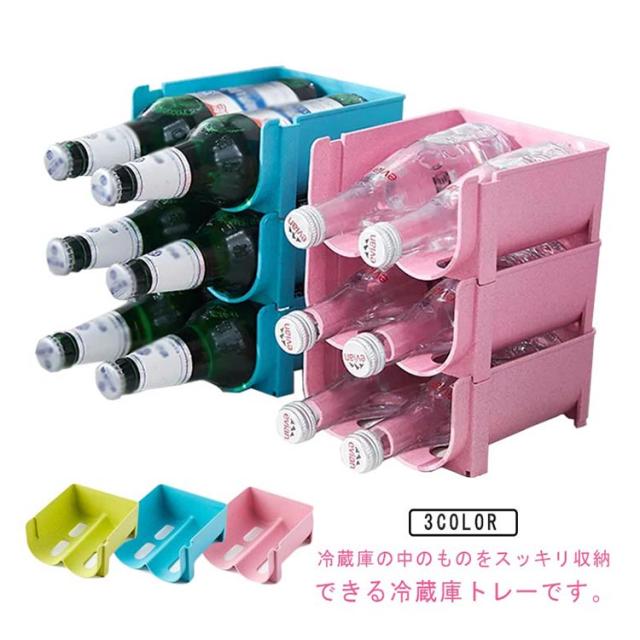 冷蔵庫 ビール ドリンクホルダー 3個セット ペットボトルホルダー 缶ビールホルダー ボトルホルダー ペットボトル 収納トレー 冷蔵庫トレー ストッカー 冷蔵庫 収納 整理 冷蔵庫ラック ワインラック キッチン整理 ピンク グリーン ブルー