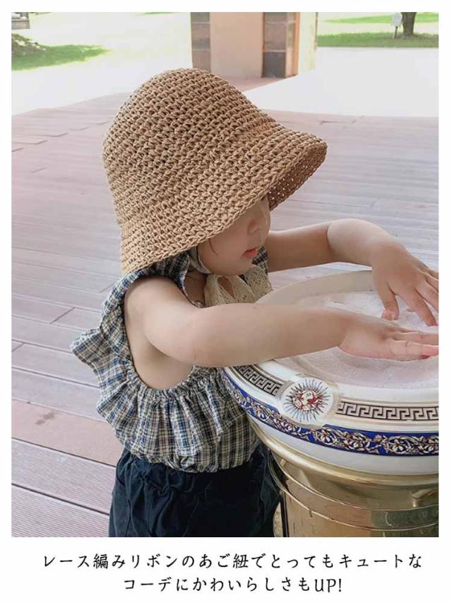 ベビー 麦わら帽子 女の子 キッズ ナチュラル 日よけ帽子 麦わらハット 紫外線対策 夏用 ペーパーハット リボン レース あご紐 キッズ帽子 ベビー帽子 子供帽子 赤ちゃん お出かけ お散歩 レジャー 旅行 出産祝い プレゼント 送料無料