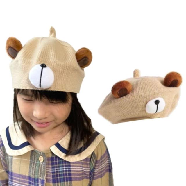 こども ニット帽 キッズ 帽子 秋冬 くまさん ベージュ 2歳 3歳 4歳 防寒 あったか 毛糸 ニットキャップ かわいい