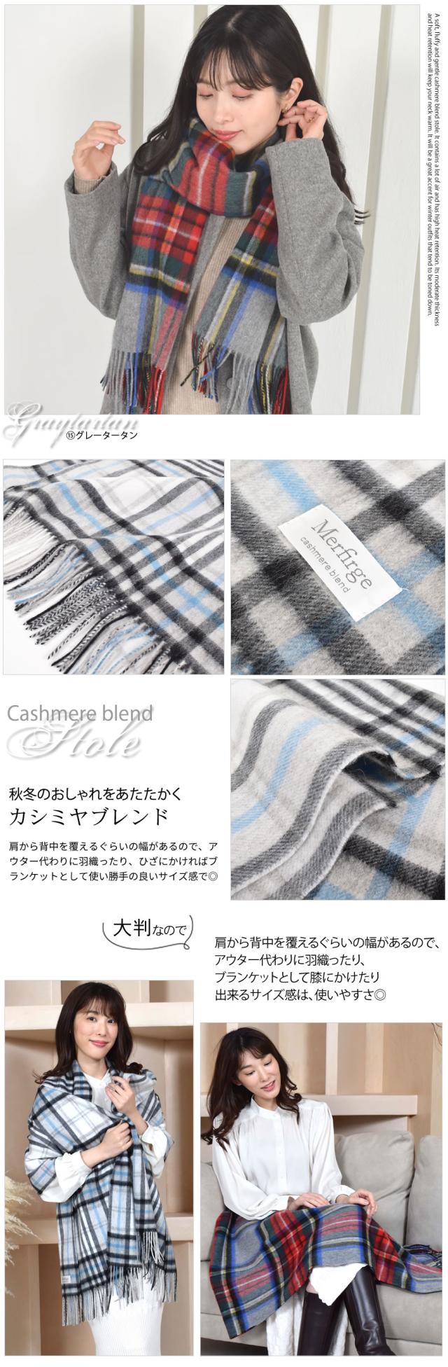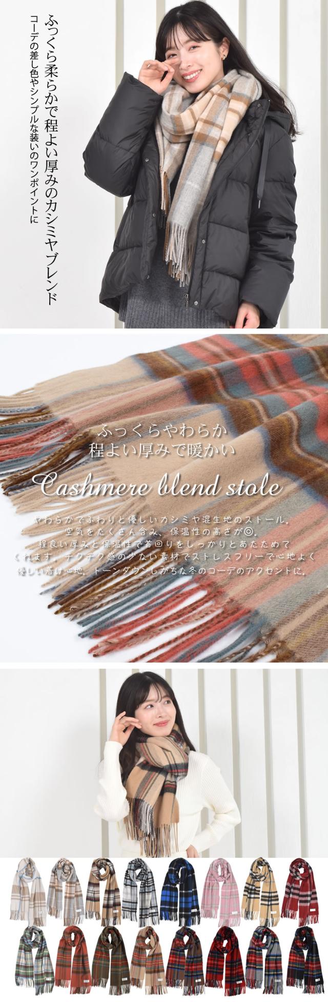 カシミヤ混ウールストール カシミヤブレンドストール (cw2466) 手洗い チェック柄 レディース 秋 冬 ラッピング プレゼント 母の日 ギフト クリスマス マフラー カシミア カシミヤストール
