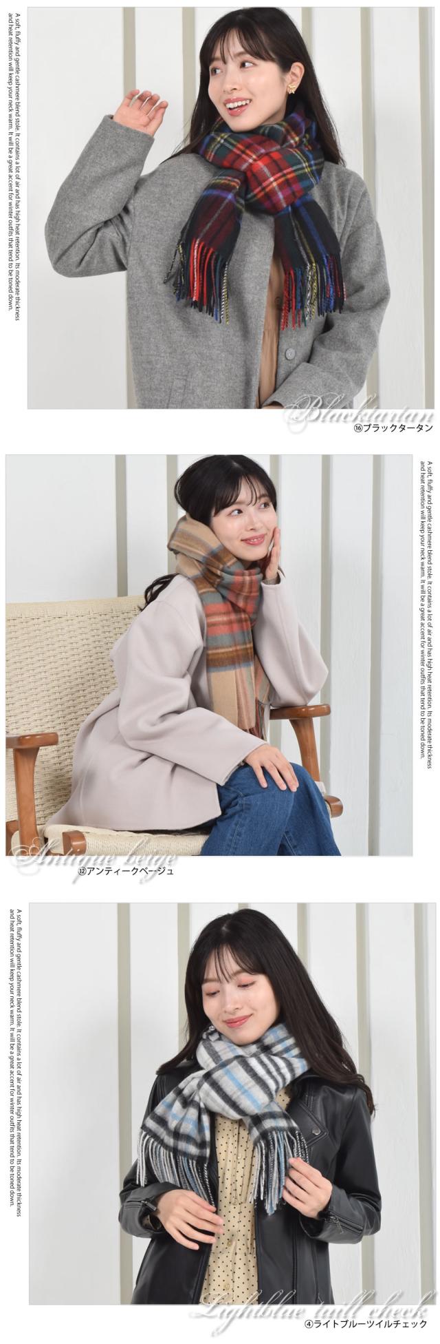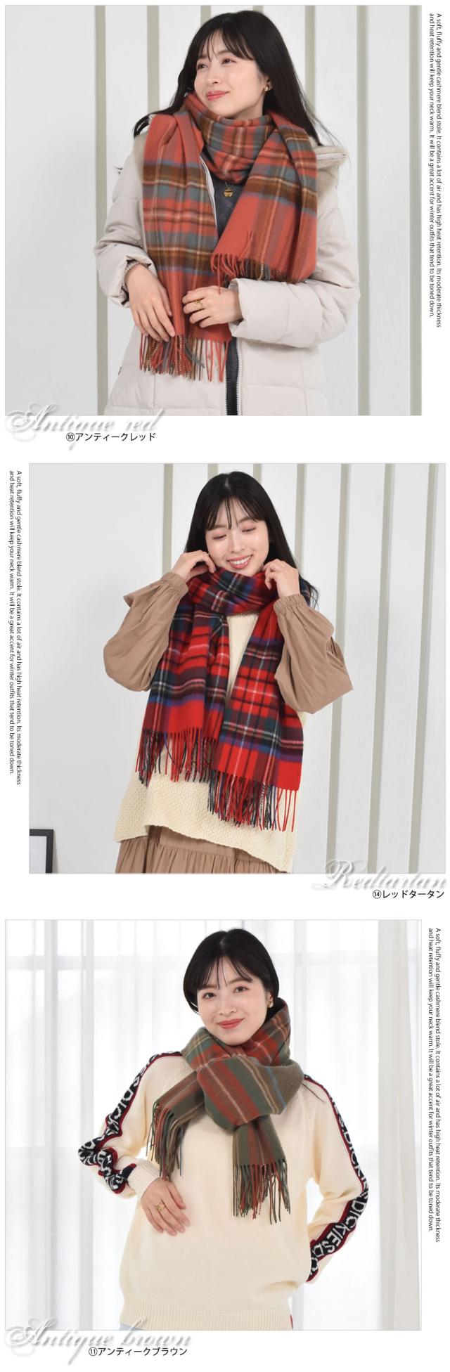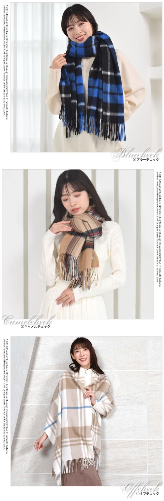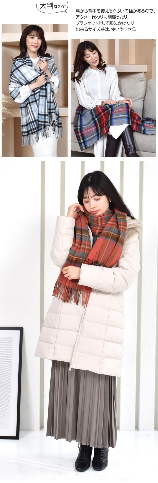 ふんわり柔らかな巻き心地カシミヤ混ストール。ウール90%とカシミヤ10%を配合したブランド生地のチェック柄ストールは、肌触りが良く、滑らかな付け心地。華やかなチェック柄やニュアンスカラーのチェック柄でコーデのワンポイントに!やわらかな肌ざわりのカシミヤと保温性に優れたウールの上質なストールは、肩に羽織ったり、膝にかけたりなど様々な使い方ができる。男女兼用のユニセックスで使えるデザインでギフトにもおすすめです。