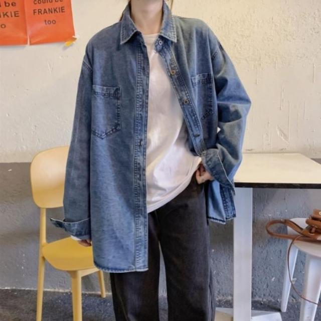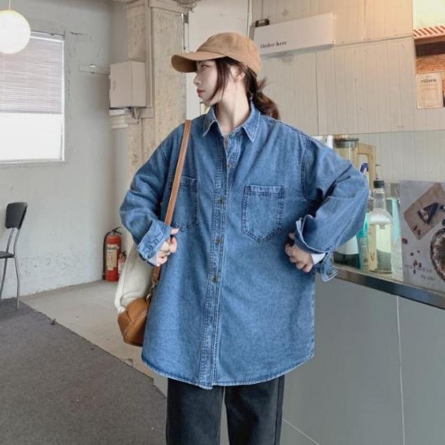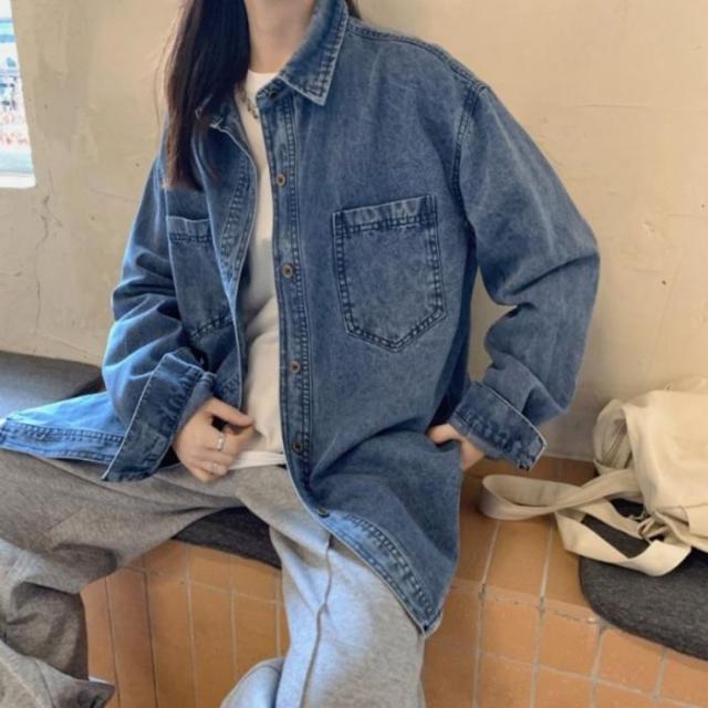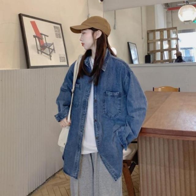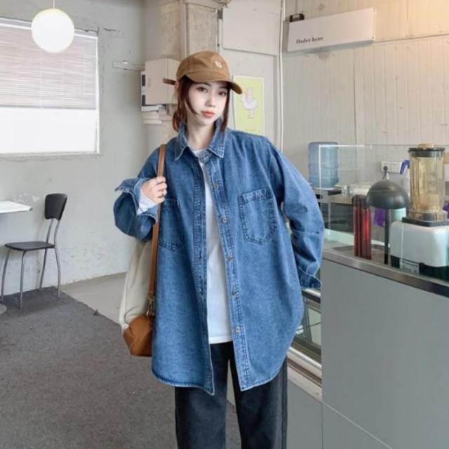 デニムシャツ レディース 羽織り アウター オーバーサイズ ゆったり カジュアル 韓国 長袖