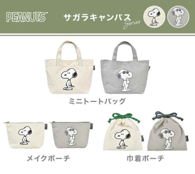 もこもこサガラ刺繍のスヌーピーがポイントです♪お弁当箱にペットボトル、財布や手帳など、外出時に必要なものが入ります。男女問わず誰でも使えるシンプルなデザインで、普段使いにオススメです。