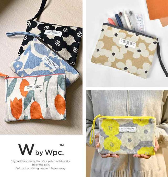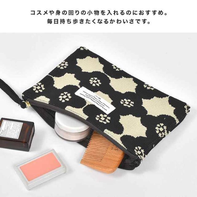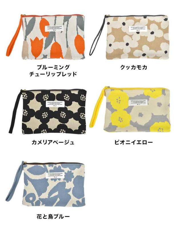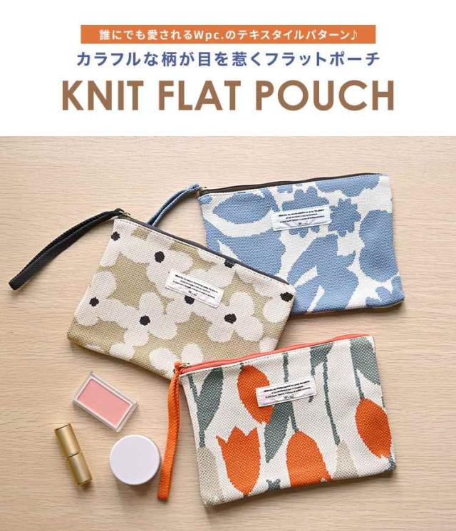 フラットポーチ wpc 大きめ おしゃれ かわいい ニット 花柄 持ち手 コスメポーチ メイクポーチ 化粧ポーチ 持ち運び 筆箱 ペンケース 高校生 女子 大人 文房具 ペン入れ マルチポーチ サニタリー 通帳ケース 通勤 通学 学生 トラベルポーチ 旅行 洗濯機OK 花柄 北欧風 薄型