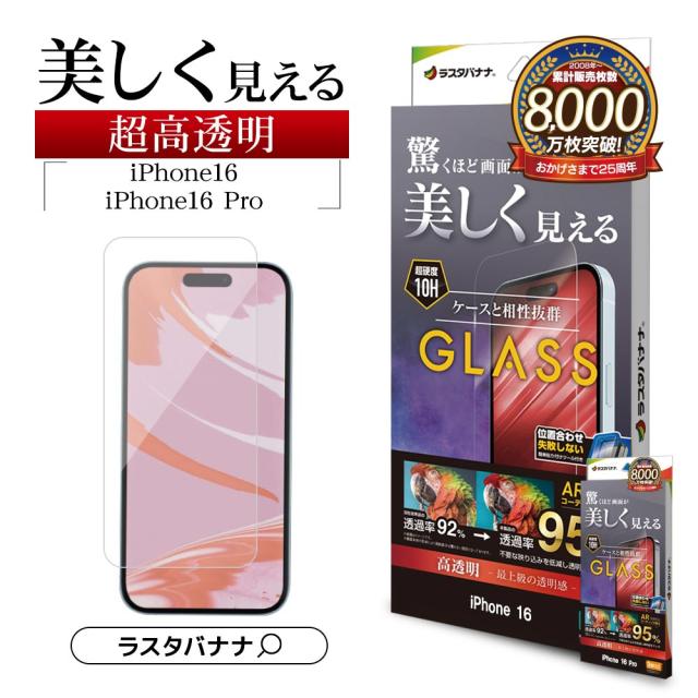 【送料無料】iPhone16 16 Pro 15 ガラスフィルム 平面保護 低反射 高光沢 高透明 クリア アンチリフレクション ARコーティング 0.33mm 硬度10H 簡単貼り付け アイフォン ラスタバナナ ARG4326IP461 ARG4402IP461P