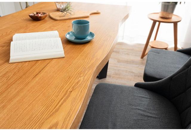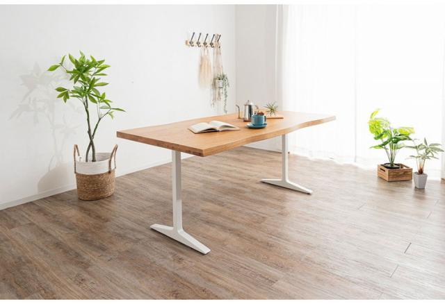 木口も耳付き加工を施し、木本来の自然な風合いと温かみのある空間を演出できるダイニングテーブル。
