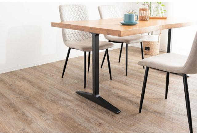 ダイニングテーブル T字脚 160×85cm 木製 スチール オーク 重厚感 厚天板 耐久性 おしゃれ 耳付き シンプル ナチュラル 自然 温かみ リビング ダイニング 食卓(代引不可)【送料無料】