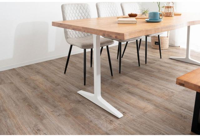 ダイニングテーブル T字脚 200×90cm 木製 スチール オーク 重厚感 厚天板 耐久性 おしゃれ 耳付き シンプル ナチュラル 自然 温かみ リビング ダイニング 食卓(代引不可)【送料無料】