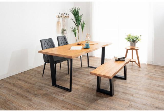 オーク無垢を使用した重厚感のある40mm厚天板。木口も耳付き加工を施し、木本来の自然な風合いと温かみのある空間を演出できるダイニングベンチ。