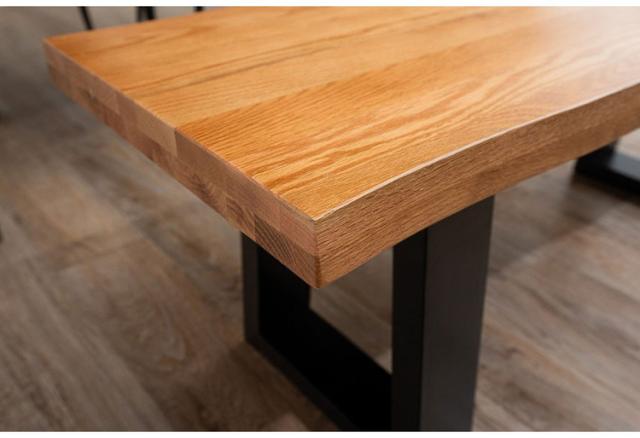 オーク無垢を使用した重厚感のある40mm厚天板。シンプルながらもデザイン性・耐久性のあるスチール製脚。木口も耳付き加工を施し、木本来の自然な風合いと温かみのある空間を演出できるダイニングテーブル。