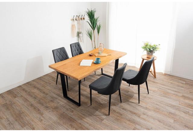 オーク無垢を使用した重厚感のある40mm厚天板。シンプルながらもデザイン性・耐久性のあるスチール製脚。木口も耳付き加工を施し、木本来の自然な風合いと温かみのある空間を演出できるダイニングテーブル。